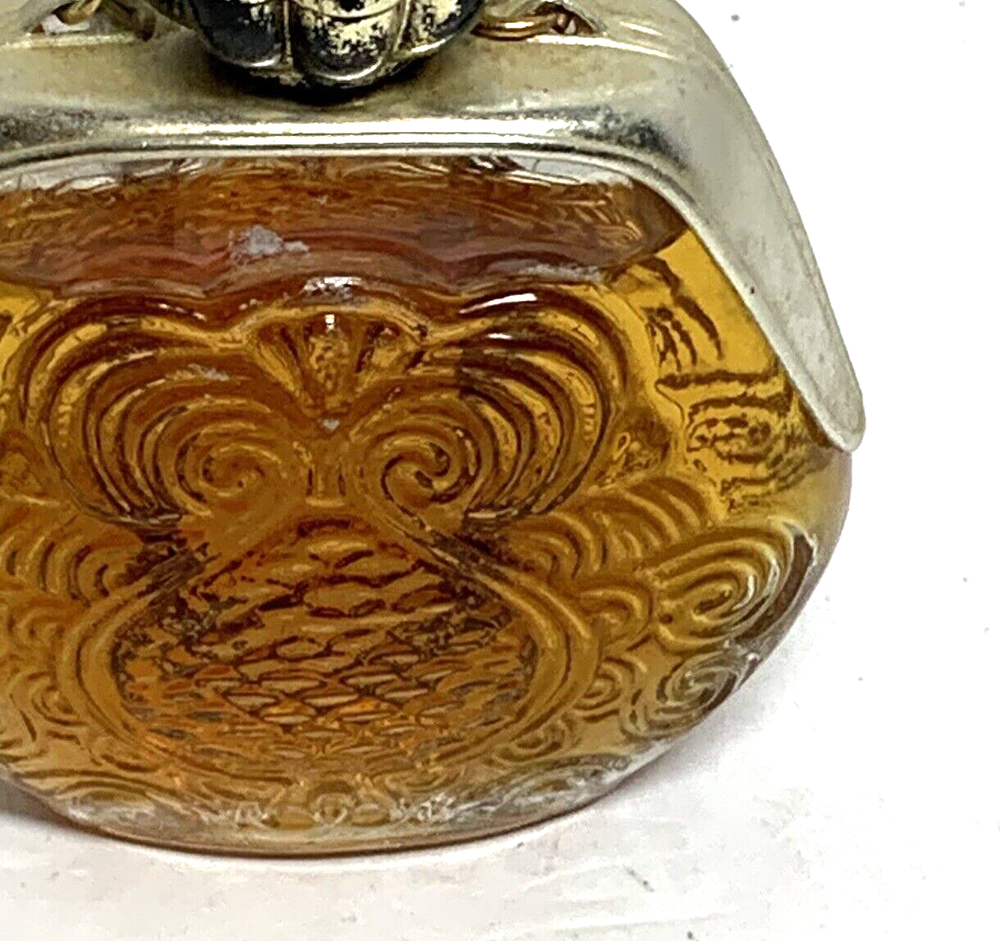 Vtg 70s MCM Avon Perfume Bird of Paradise Cologne Approximately 3/4 full, see photo. Comes with the screw on lid and a chain handle for the purse. It is an Owl Purse design.