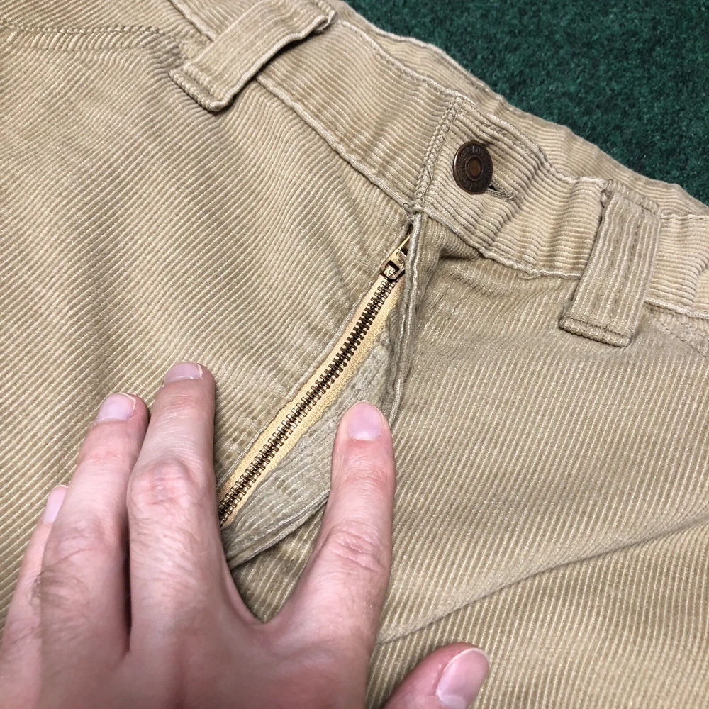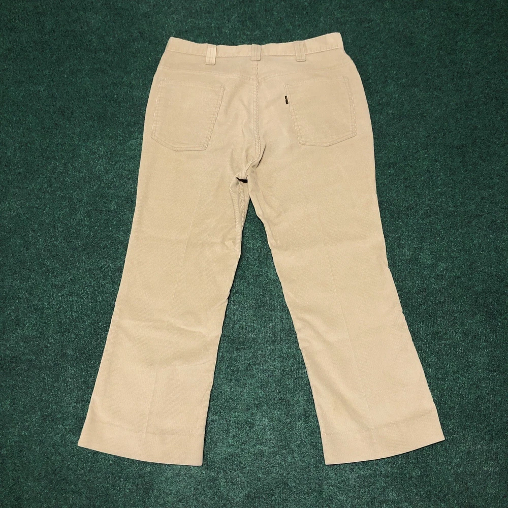 Vintage 70s Levi’s Corduroy Pants Size 36x26 Tan Bell Bottom Flare Big E Hippie Preowned Good condition Legs look like the were hemmed. Small light stain on leg near bottom. No major flaws. No Size tag that I could find, so make sure you actually look through all the measurements in the pics. Please see pics and ask questions before purchasing Thanks!
