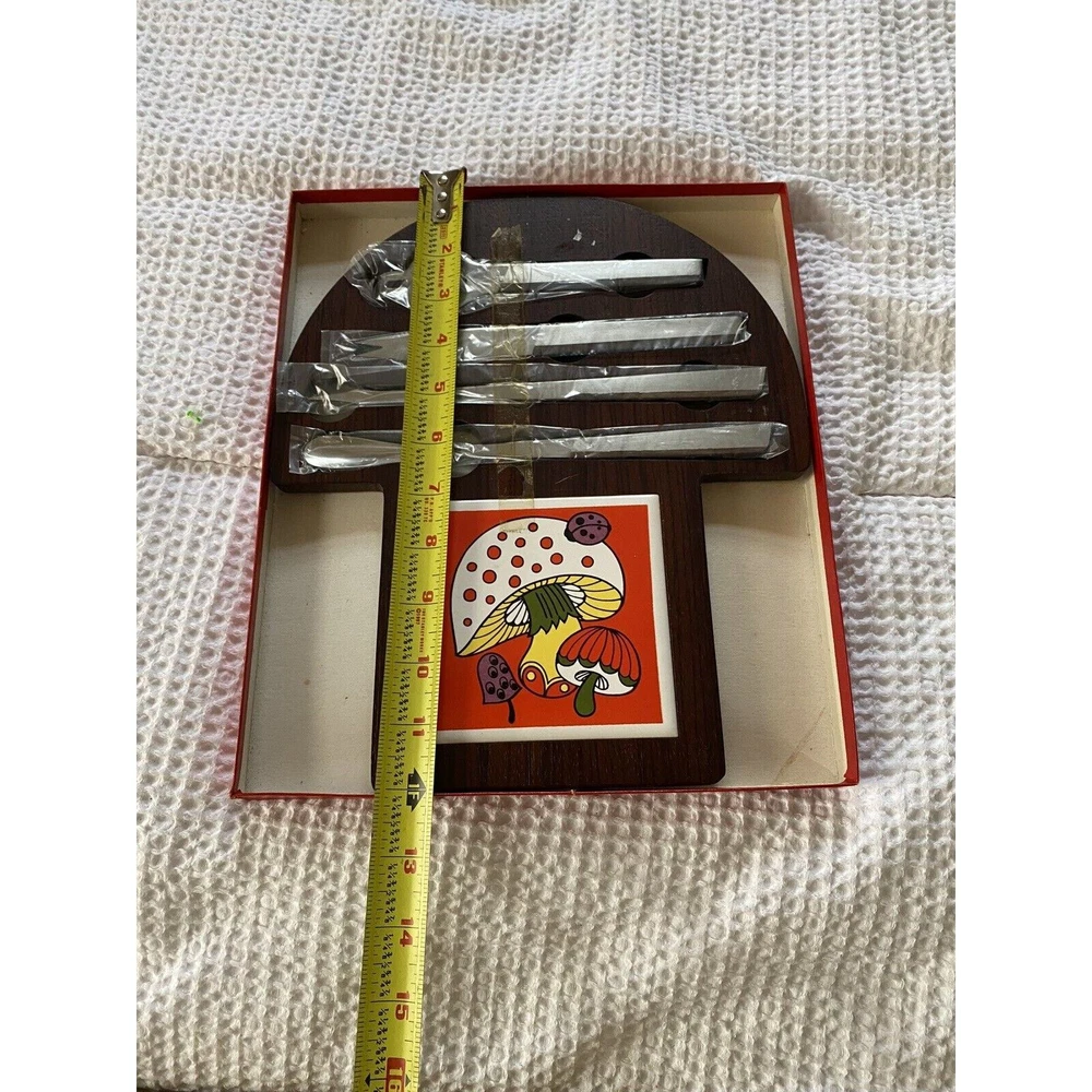 Shape:RectangleTheme:MushroomsPattern:Floralgtin13:Does not applyItem Height:2 inBrand:UnbrandedColor:OrangeItem Length:10-15 inType:Cheese BoardWood Tone:Light Yellow WoodFeatures:Tile InsetItem Width:Less Than 10 inPersonalize:NoItem Depth:2 inStyle:Vintage/RetroSize:MediumCountry/Region of Manufacture:JapanNumber of Items in Set:1Material:WoodUPC:Does not apply
