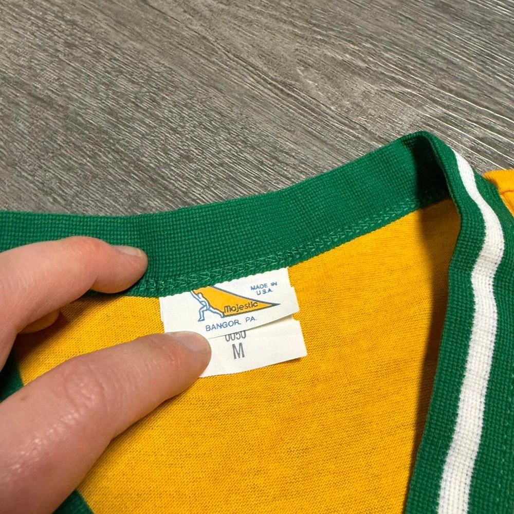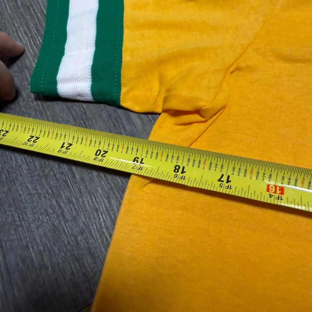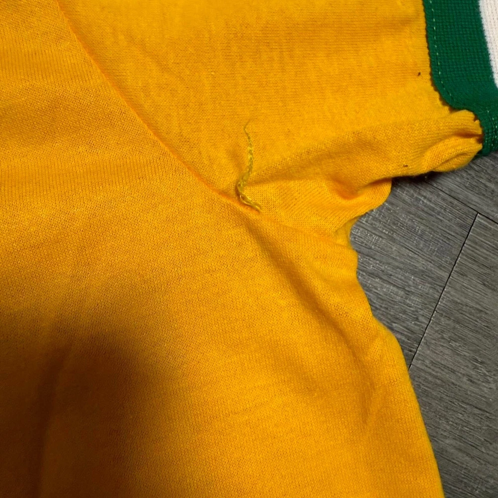 Vintage 70s baseball jersey yellow shirt medium Oakland athletics Pit 19 Length 27 Flaw shown