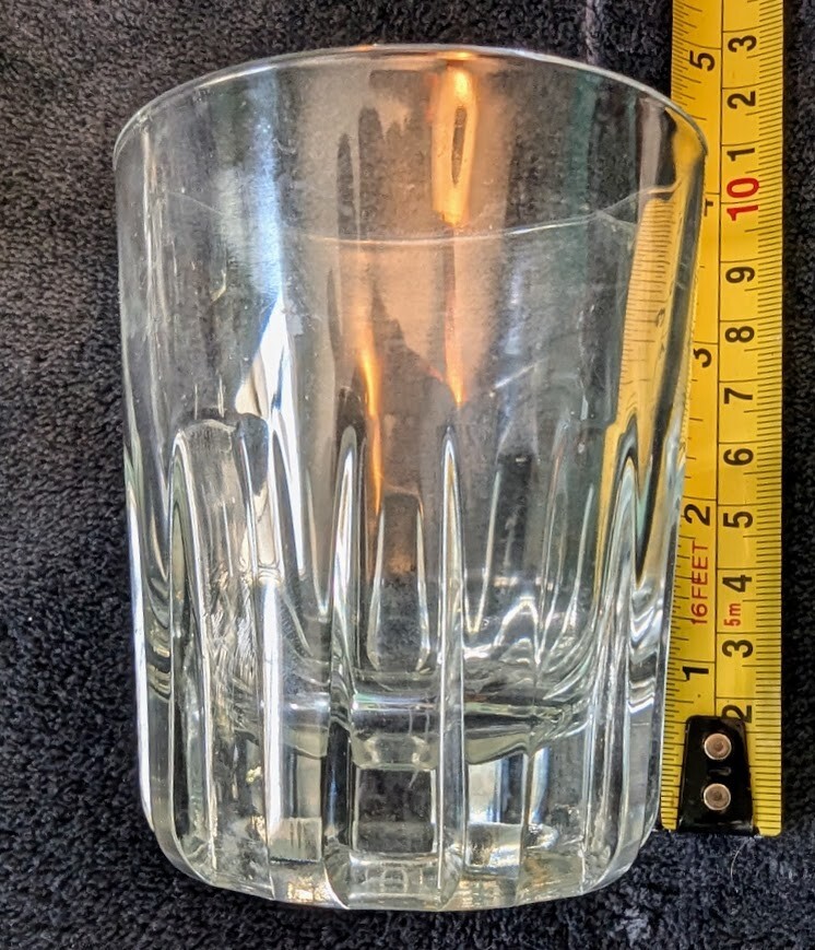 Elevate your drinking experience with these Juice/ Whiskey Glasses. The vintage set of 4 round glasses are made of clear crystal glass and have a capacity of 8 oz. Perfect for all occasions, these glasses come with a heavy base feature that adds a touch of fun to your party. The glasses are perfect for serving juice, whiskey, or any other cocktail of your choice. With a height of 3 5/8" and a width of 3 inches, these glasses are a must-have addition to your home bar. The set includes 4 glasses, and each glass is crafted with high-quality material to ensure durability. Get ready to impress your guests with these stylish and functional drinking glasses.