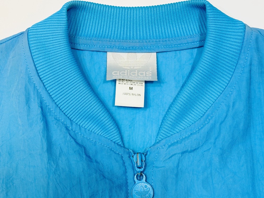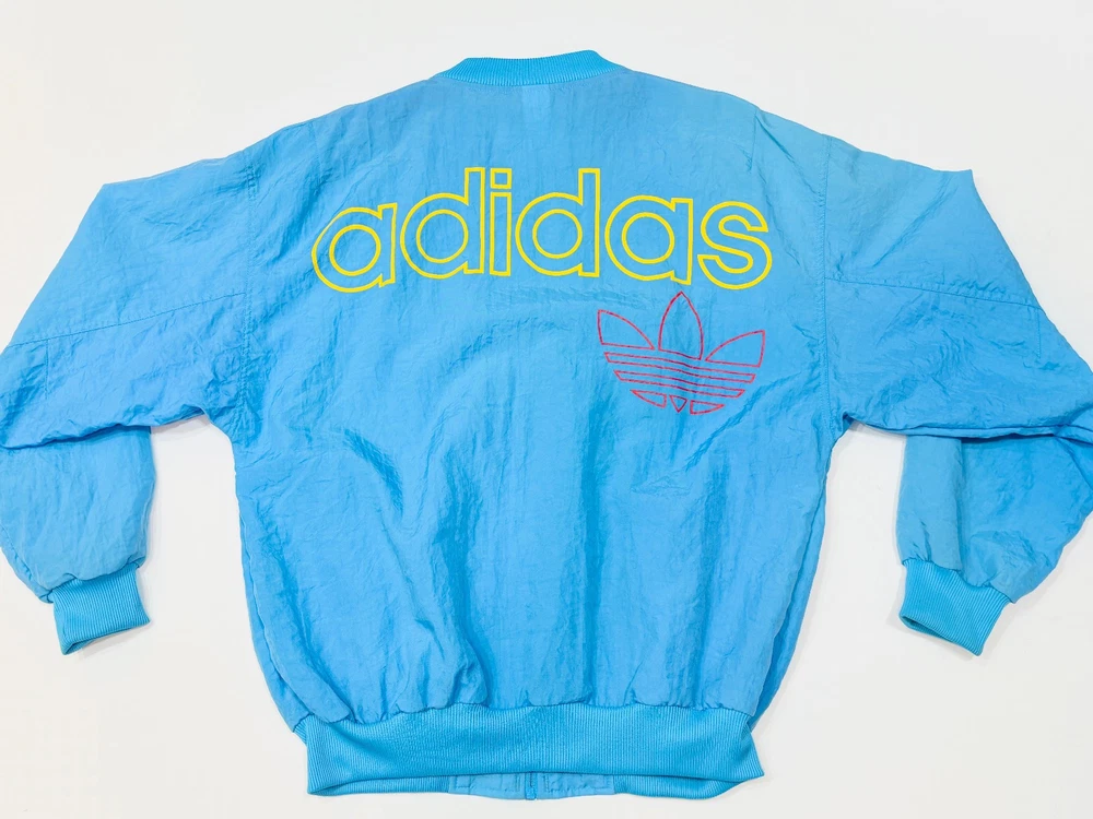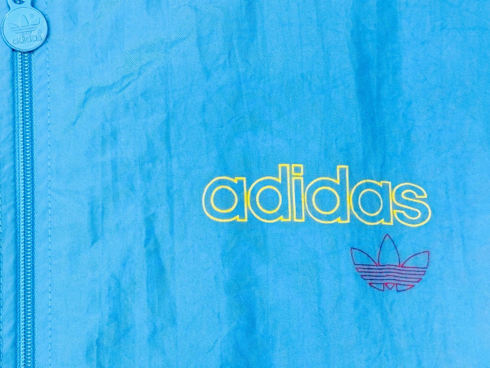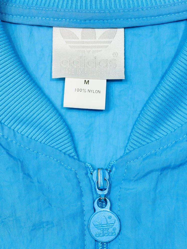 Step back into retro style with this rare vintage Adidas windbreaker jacket in bold electric blue. Features include: Size: Medium (measures approx. 23" pit to pit) Material: 100% Nylon – Lightweight & crinkly Color: Vibrant blue with yellow “adidas” text and red Trefoil logo on front and back Ribbed cuffs, collar, and hem for classic bomber styling Zip-up front with Adidas Trefoil logo on zipper pull Made in the Philippines (true vintage) This piece is in excellent vintage condition and perfect for collectors or streetwear enthusiasts. A great example of 80s/90s Adidas Originals. Don’t miss out! Ships fast and secure. Feel free to ask any questions!