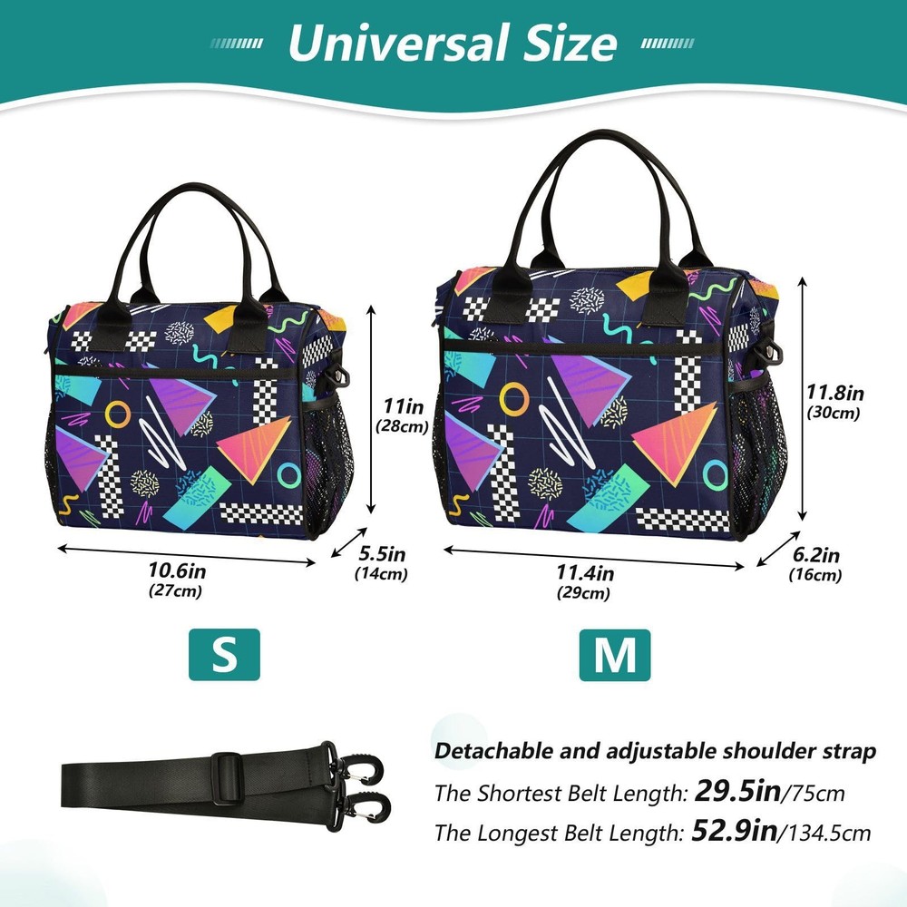 Features: Material: Made of highly durable Polyester,food-safe PEVA lining, and sturdy zippers Dimension: S:10.6" x 5.5" x 11", M: 11.4" x 6.3" x 11.8", this lunch bag could meet kids' daily needs Dual Compartment: it could separate the cold and warm food Comfortable Wear: Carry by the handles or by the shoulder strap Great gift for kids Manufacturer recommended age Grade: 3+ years Material:This ergonomically designed meal prep bag is made of the highly durable 600D Polyester,food safe PEVA lining,PE foam insulation and strong sturdy zippers. This material is high quality. Large Capacity & Multi Compartments: Insulated Lunch Bag has two size, S: 10.6 x 5.5 x 11 inches, M: 11.4 x 6.3 x 11.8 inches, and the main zipper compartment is designed to provide you with lunch and hot/cold/fresh drinks. The front zipper pocket can keys, cards, napkins. Two mesh pockets for water bottles. Multi Carrying Ways: portable for carrying out. The reinforced handle on the top of adult lunch bag allows you to carry it vertically, over the shoulder or across the wrist. The detachable shoulder strap can be adjusts from 29.5" to 52.9" when carried, no matter how you carry it, and it will relieves pressure on the hands or shoulders. Multiple Occasions:This bag can be used as a lunch bag, picnic bag, snack bag, cooler bag, tote bag and shopping bag for girls boys adults packing food and drink to work, office, camping, gym, outdoor etc. Manufacturer recommended age Grade: 3+ years. Easy To Clean: Full DIY printing, this lunch box kids has smooth interior that more easier to wipe clean. It's perfect for school age child lunch bag, for school lunch, for a picnic, for meal prep, adult for work. And also great for Birthday gift, Christmas gift, Everyday gift, Back to school item, gift for your elementary daughter and son, gift for granddaughter and grandson.