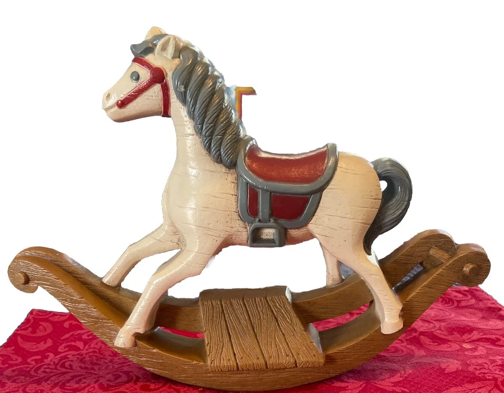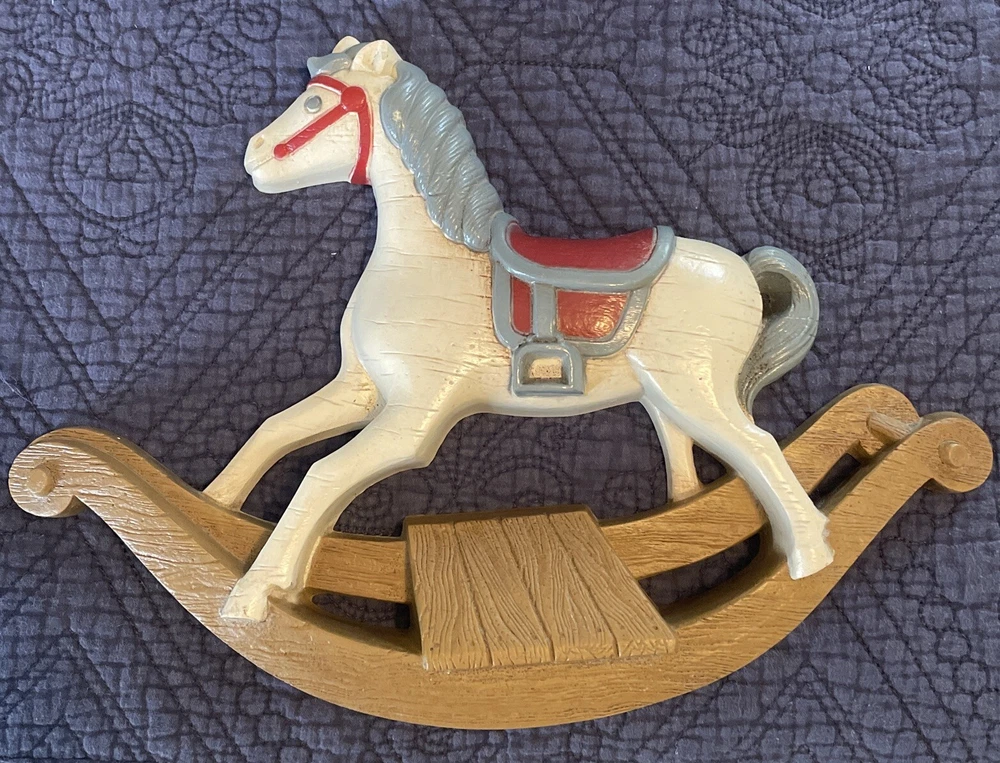 Add a touch of nostalgia to any room with this vintage 1980s Burwood Products 13" Rocking Horse Hanging Wall Plaque. This decorative plaque features a cute rocking horse theme that is perfect for baby and kids' rooms. It can be easily mounted on the wall and is made of durable plastic material. Whether you're a collector of vintage items or simply looking for a unique decor piece, this plaque is sure to add character to any space. Beautiful Condition.