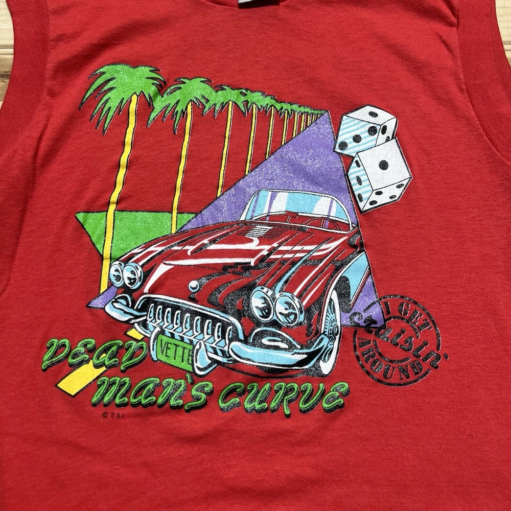 Vintage 80s Dead Mans Curve Corvette Dice Beach Graphic Shirt Size Large