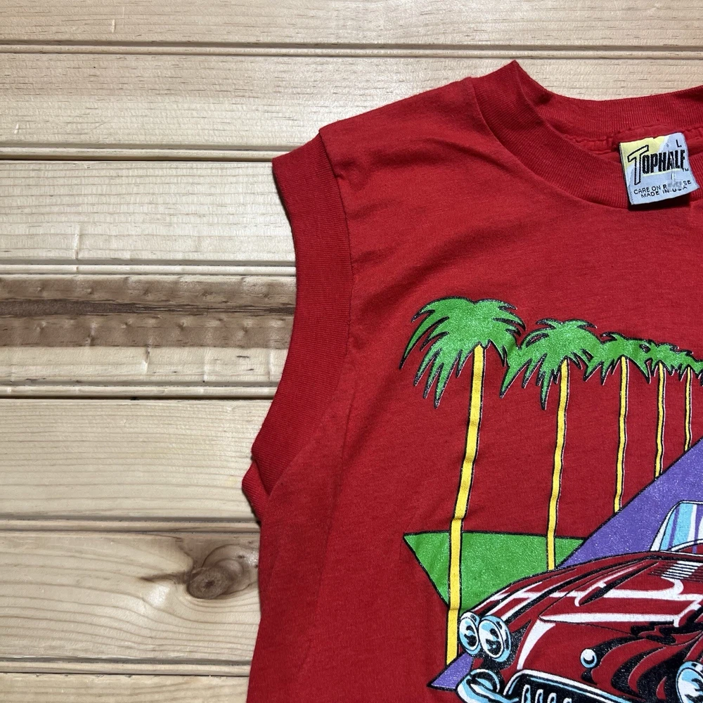 Type: T-Shirt Department: Men Brand: Beach Size Type: Regular Size: L Theme: 80s Color: Red
