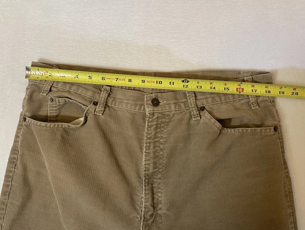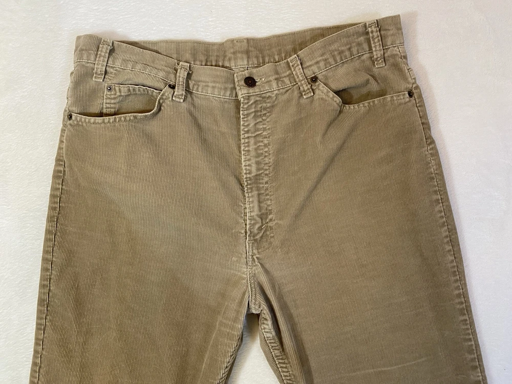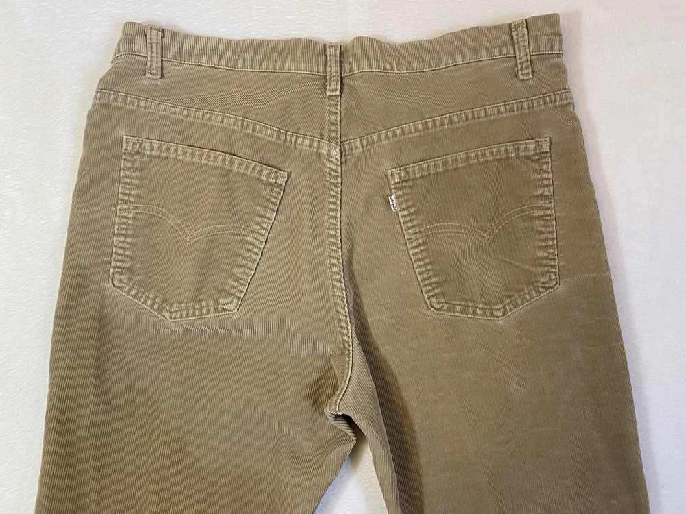 Vintage Levi corduroys. Made in USA, production year 1989. In good preowned condition! Some normal wear should be expected on vintage items. In a tan brown color . Perfect for fall and winter.
