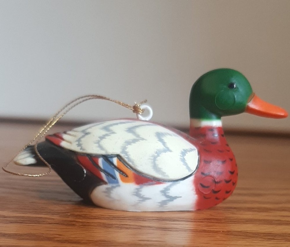 The Vintage 80's Mallard Duck Christmas Ornament is a charming collectible ornament perfect for Christmas holiday decor. Made in Hong Kong in the 80's, this Mallard Duck ornament features a nostalgic design that adds a touch of retro style to any Christmas tree. This vintage ornament from the Ducks & Chicks collection is a unique and festive addition to any holiday ornament collection, bringing joy and nostalgia to Christmas celebrations.