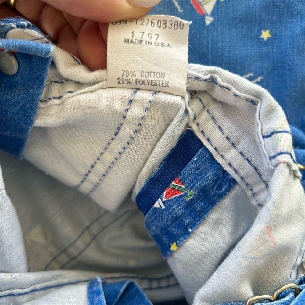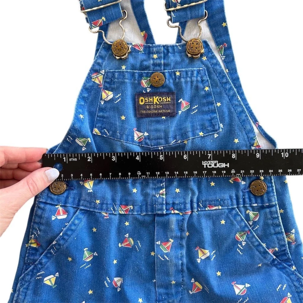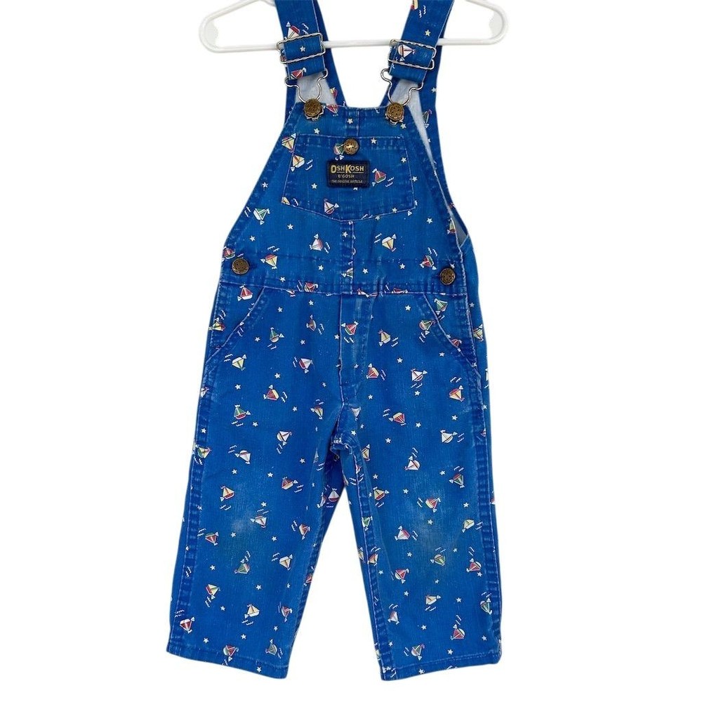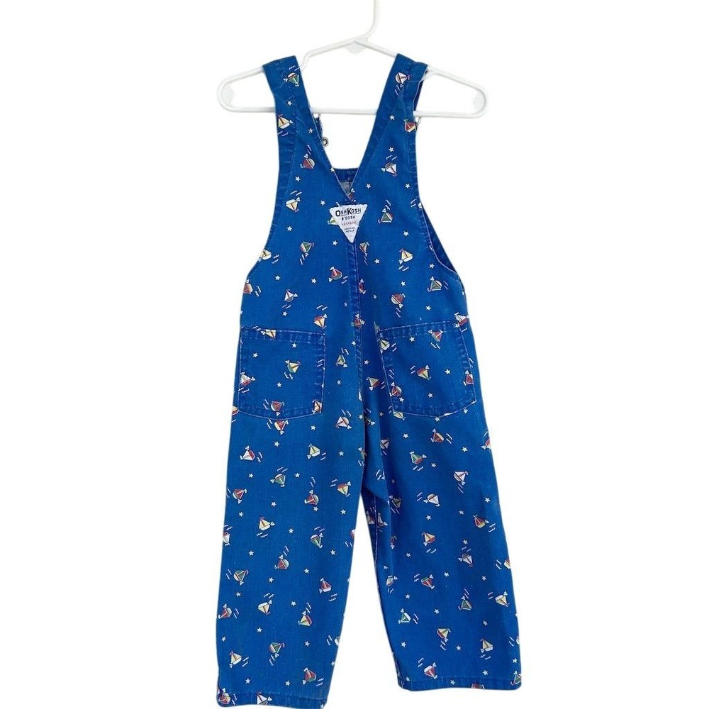 Vintage 80s OshKosh B'gosh Sailboat Print Overalls Kids Sz 2T Made in USA