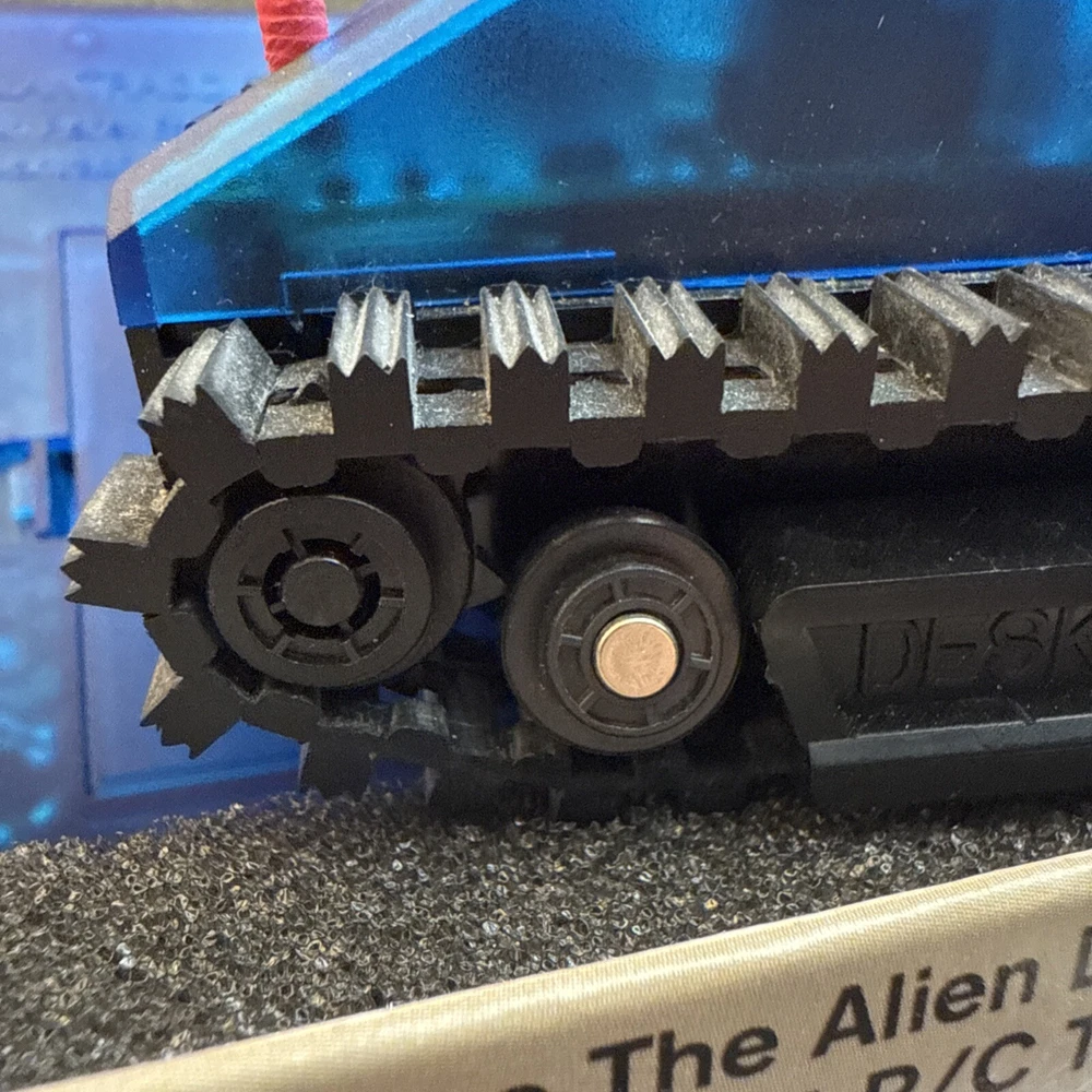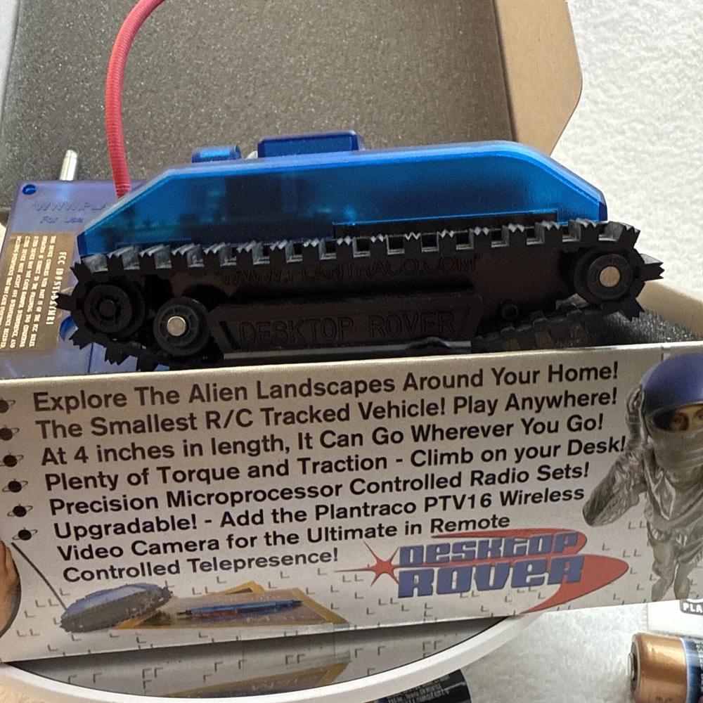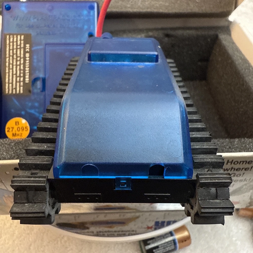 Experience the thrill of driving a Plantraco RC Desktop Rover RC Tank, perfect for collectors and hobbyists alike. This vintage toy from the 80s is a replica of a tank, with a translucent futuristic blue color and battery operated. It has been tested and is guaranteed to work, making it a great addition to your collection. Please note the antenna is broken and will need replacing or simply as cool display! The tank is designed for remote control, with a 27 MHz laser tag that allows for easy and efficient control. It is suitable for ages 8 and up, as well as collectors in their 70s. This toy is perfect for those who love military vehicles and enjoy classic electronics and collecting nostalgic items. Add this Plantraco Rover to your collection today!