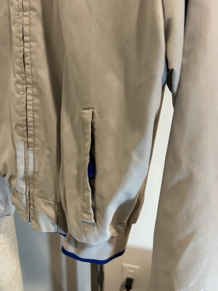 This Vintage 80s Reversible NASCAR Michelin PIT CREW JACKET is a stylish and unique addition to any man's wardrobe. Made from cotton with a zip closure, this gray bomber jacket features the Michelin logo as accents. The jacket is reversible, adding versatility to its style and making it perfect for casual occasions in the fall season. With a regular fit and a size M, this vintage piece from the 80s is sure to make a statement with its racing theme and United States manufacture.