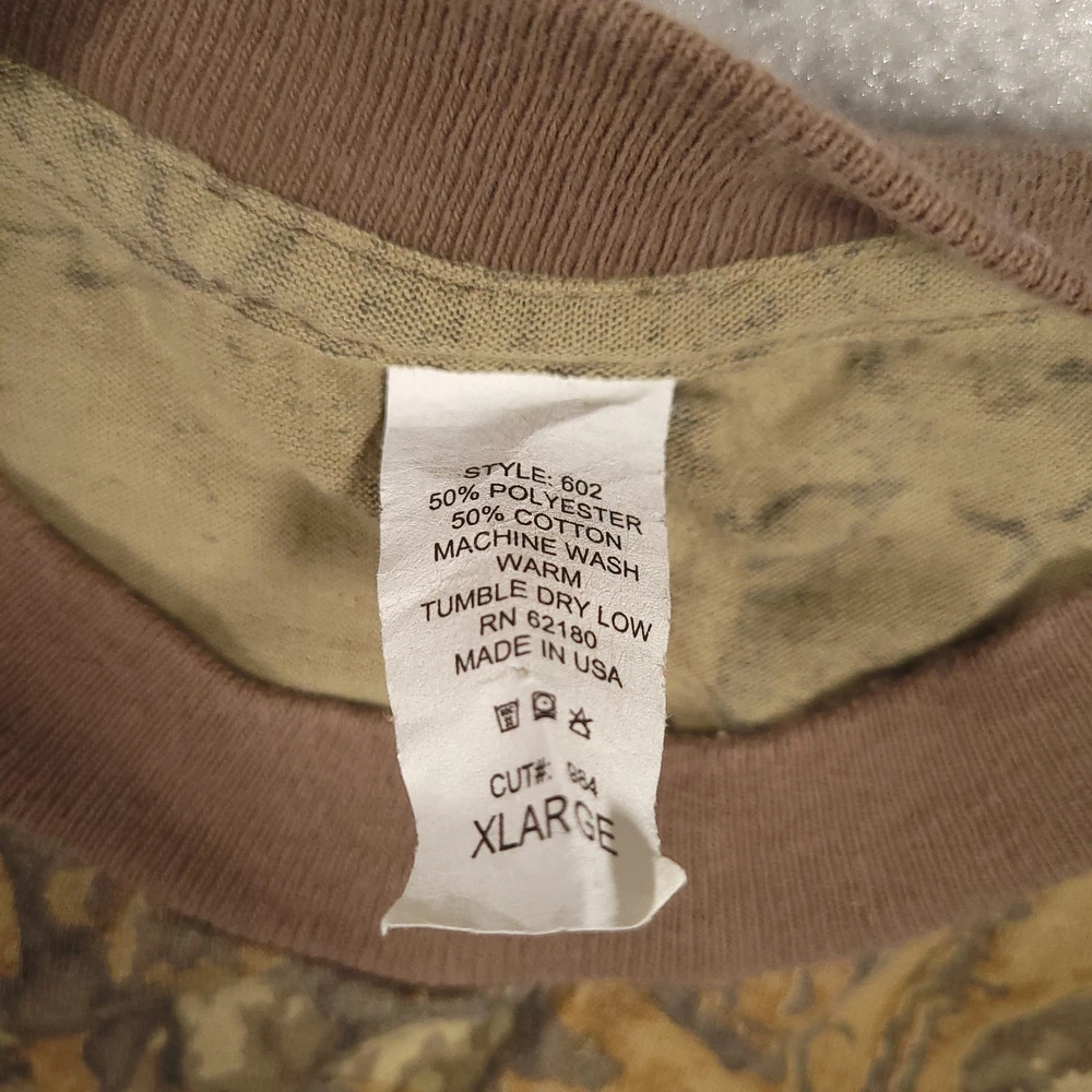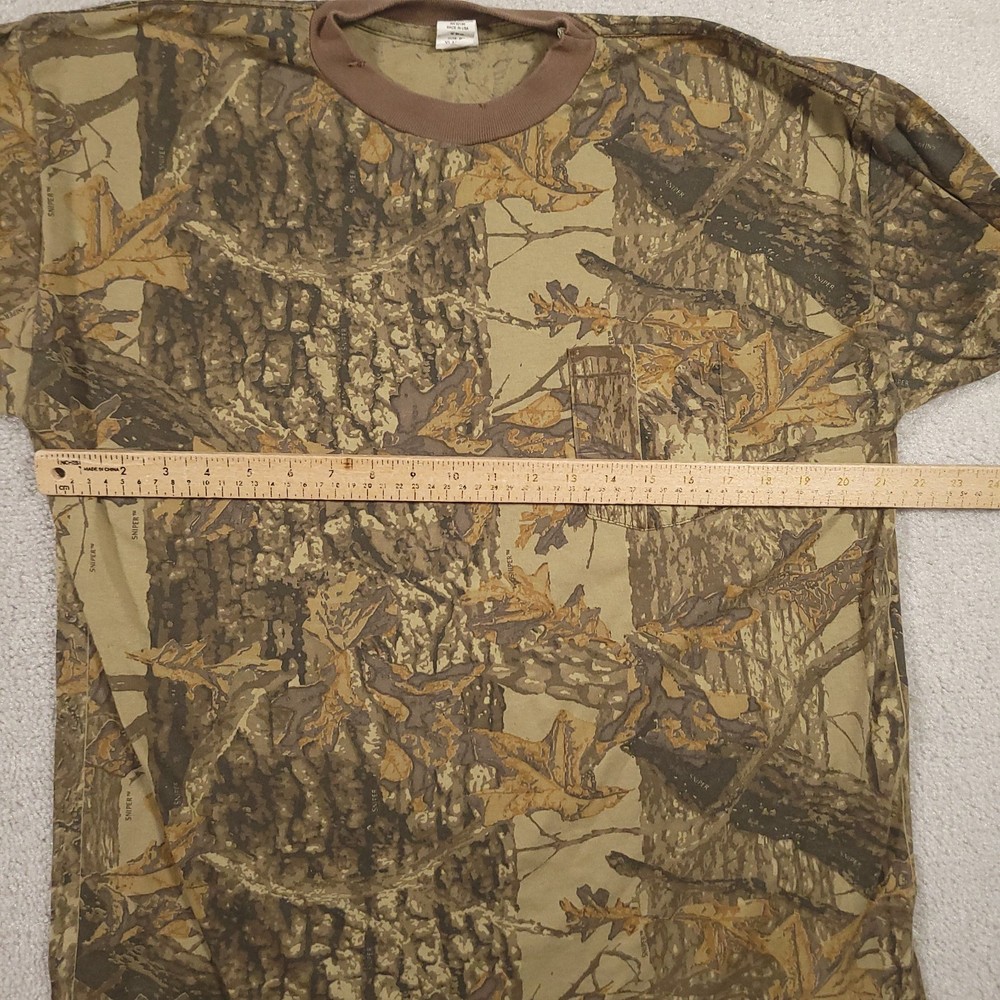 Vintage 80s SNIPER T Shirt Adult XL Brown Tree Camo Long Sleeve Crew Neck Please see above photos for all measurements Snags/holes on neckline as seen in pictures