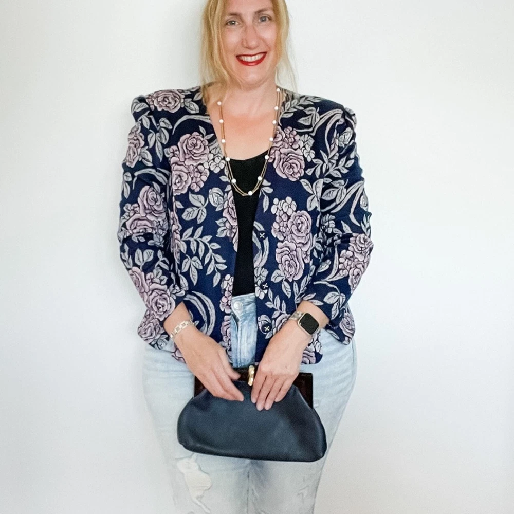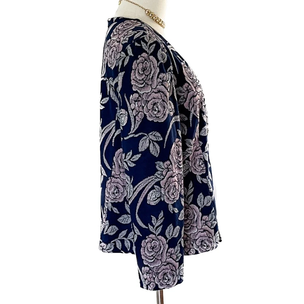 So sweet vintage 80s Stuart Alan floral lightweight knit tapestry jacket! Padded shoulders. Adorable decorative buttons. Vented front hem. Completely cute! Made in the USA back in its day Measures flat Shoulder ~18” Chest 21 Sleeve 22 Length 23.5 •Size: 16/XL •Condition: Excellent vintage – this was once part of a set but is flying solo now. Still super cute on its own! •Color: blue pink gray Bundle for combined shipping! Pictures/video are part of the description. Measurements are approximate and for guidance. Color may vary by screen. Sizes vary between designers. ALL preowned items can be expected to show normal signs of wear. Smoke free, DOG FRIENDLY home. Orders will be shipped in clean recycled packaging whenever possible. 10% of net sales go directly to charity at my local food bank. Tags: vintage floral cottagecore grannycore cottage style grandmillennial coquette plus size 80s spring summer fall transitional