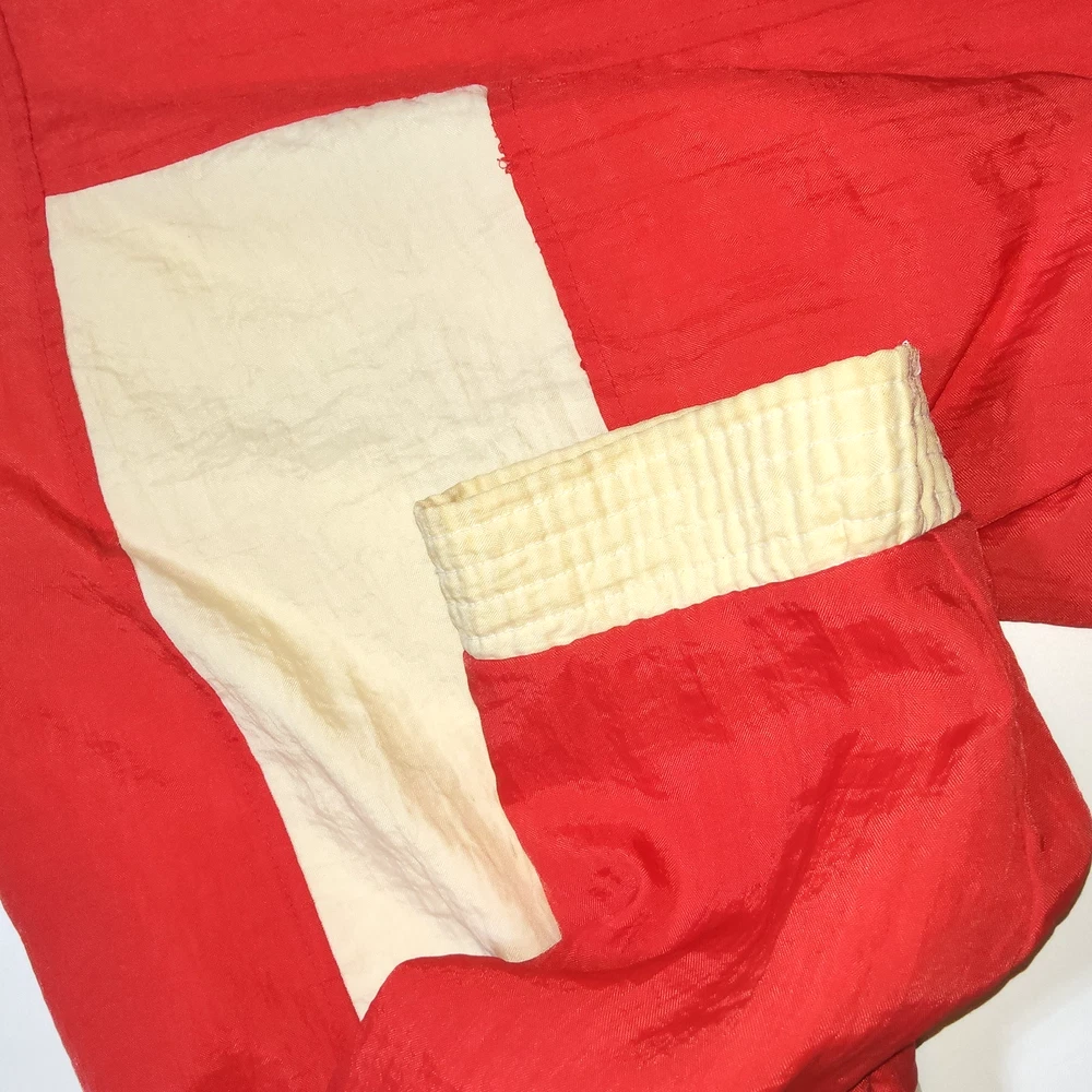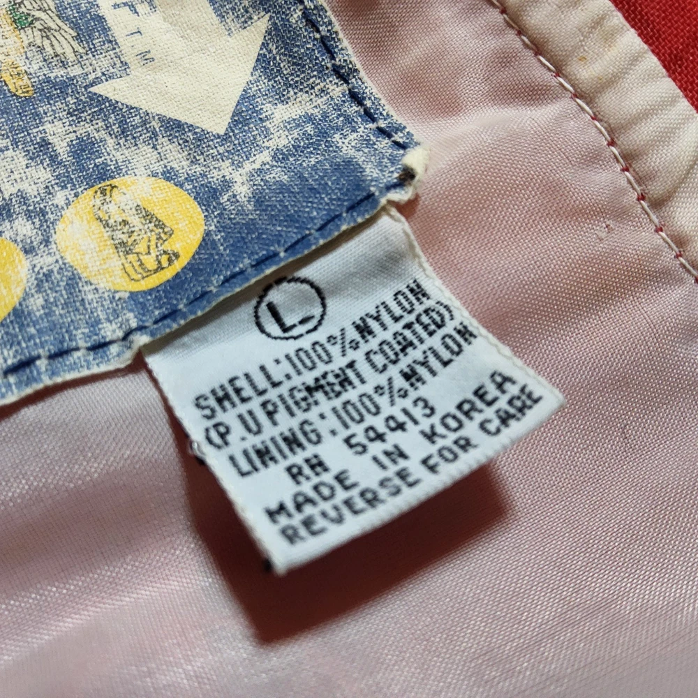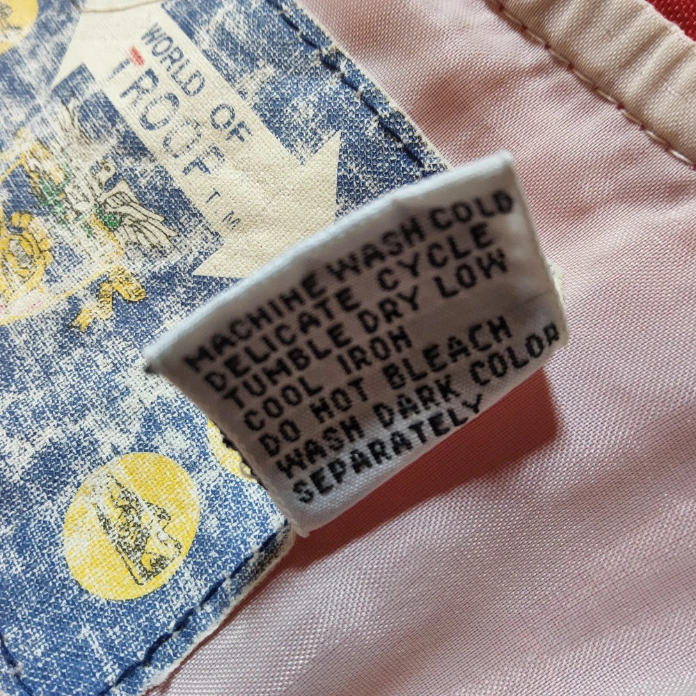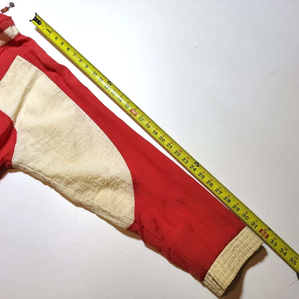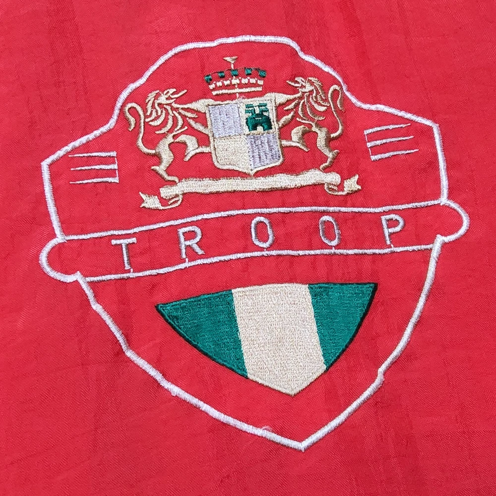 Can combine shipping on all orders. Vintage 80's world of troop windbreaker hip hop rap zip up jacket size large Had a new zipper installed cause the old one was busted. I specifically asked seamstress to install the signature Troop original zipper pull but didn't. Perhaps you can get it put on. Comes with jacket. Could use a nice oxy clean bath to get the brights out on cream colored sections. The reds, embroidery, and logos are crisp. Definitely early 80s. Definitely not owned by a breakdancer or else colors and fabric would be faded. All pre-owned clothes sourced from thrift stores,yard sales,estate sales,flea markets,etc. and have NOT been washed by me. My household is non smoking and do my best not to pick up stinky items.