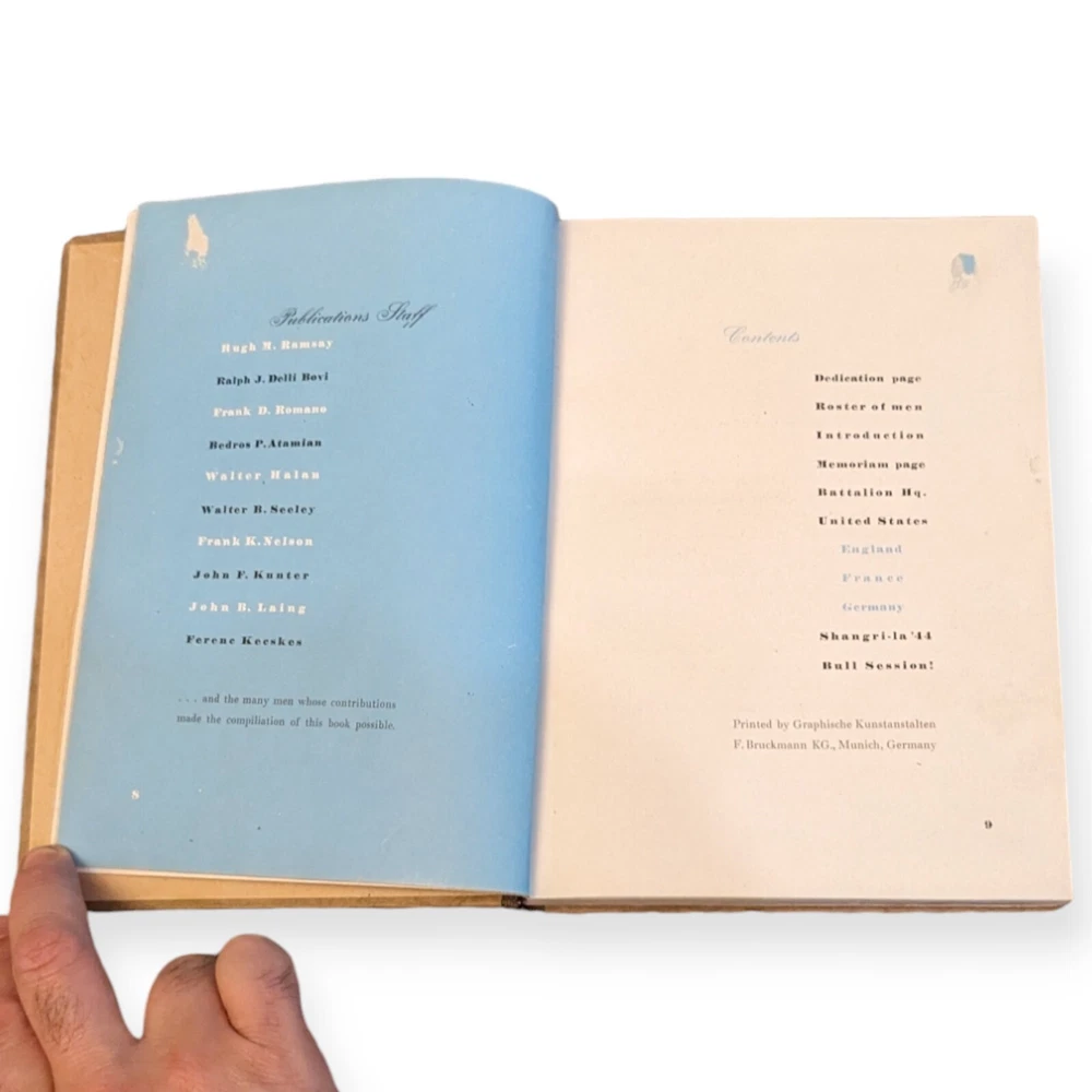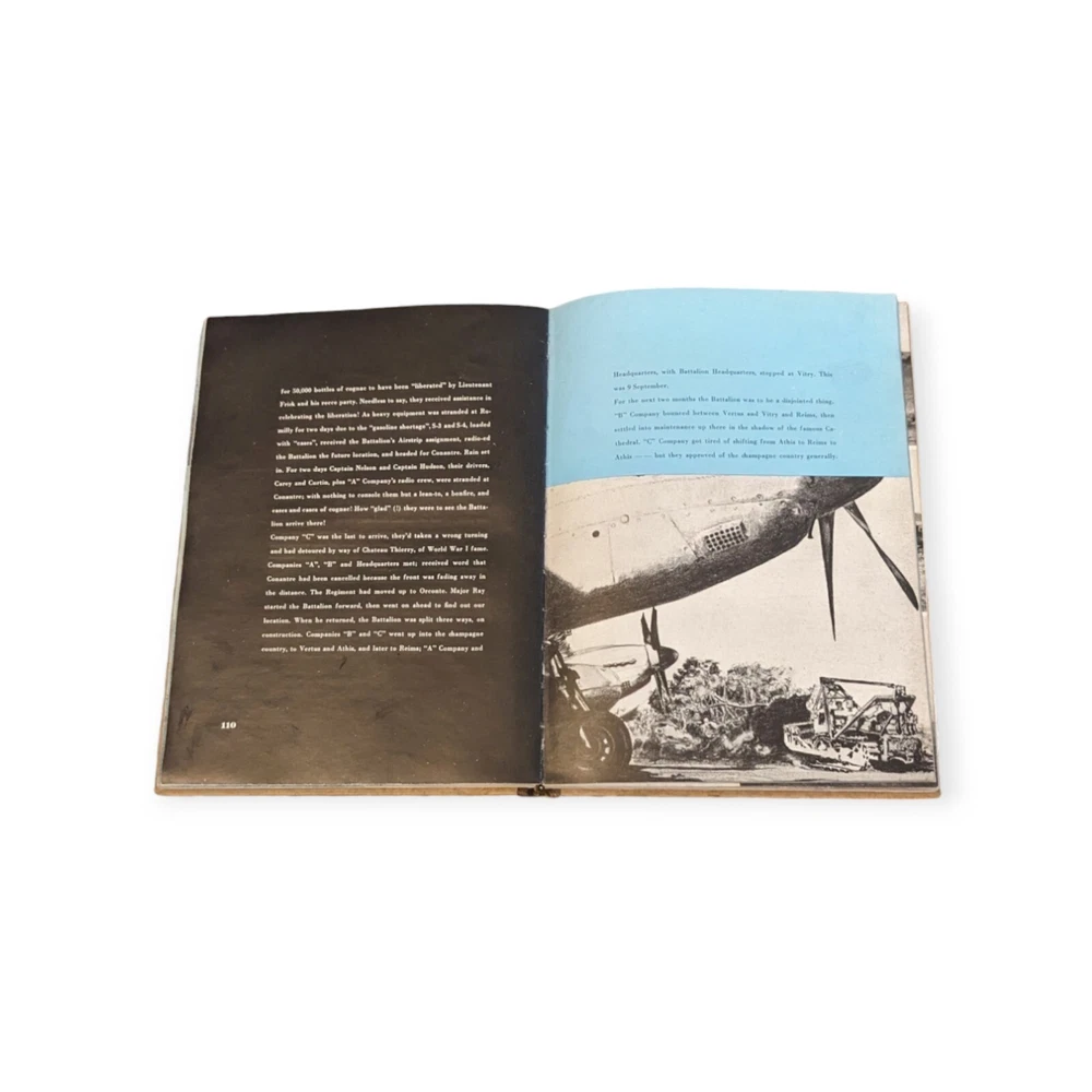 This vintage hardcover book is a must-have for any collector of militaria. With a focus on the 850 Engineer Aviation Battalion during World War II, this original period item provides a unique glimpse into the past. The book was manufactured in the United States and is an excellent addition to any collection of WW2 memorabilia. Featuring detailed information about the battalion and its experiences during the war, this book is a valuable resource for history enthusiasts. Whether you are a collector or simply interested in military history, this vintage book is sure to impress. This is in very good condition for it's age. Both covers are intact. There are some dings on the corners. All the pages are there, including a fold out map. Nice piece of history.