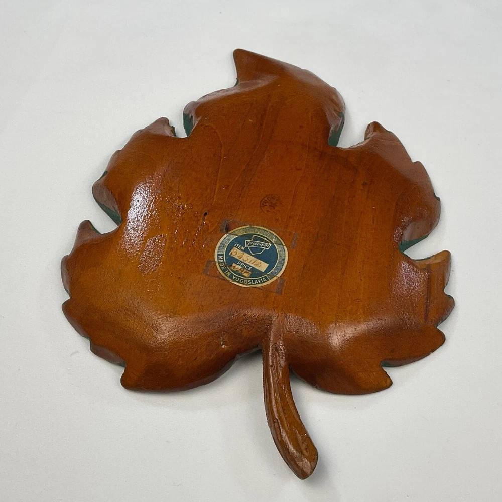Vintage Hand Carved Wooden Grape Leaf Trinket Dish Made in Yugoslavia by Jugo Export, Item B23112 9” long, 6.5” wide Very good vintage condition - please see photos for additional details