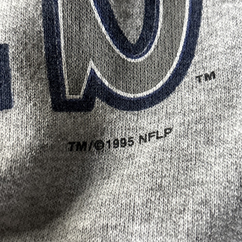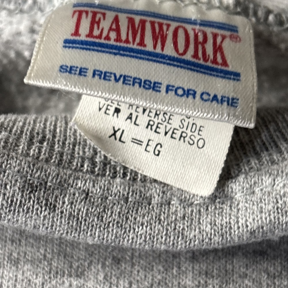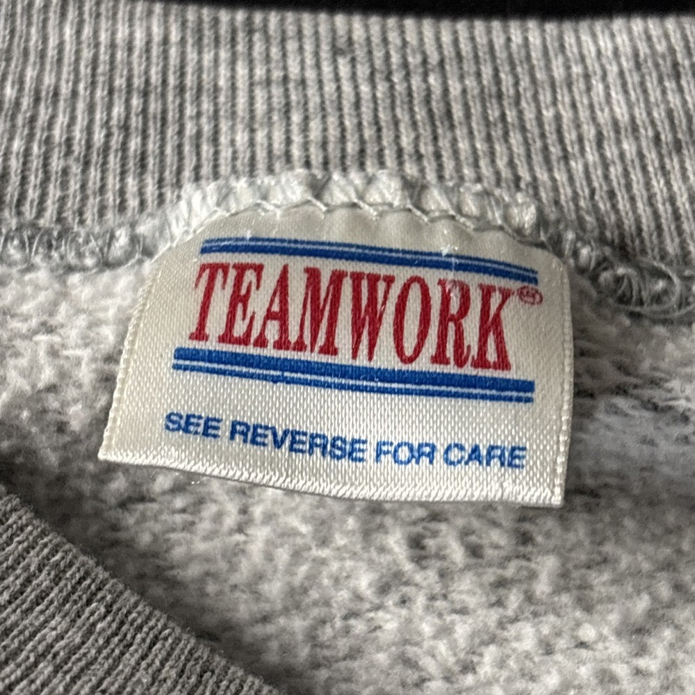 This vintage 90's TEAMWORK NFL Dallas Cowboys print sweatshirt is a stylish addition to any man's wardrobe. The gray color and XL size make it a versatile piece that can be easily paired with jeans or a casual outfit. The classic design and long sleeves give off a retro vibe, perfect for fans of the Dallas Cowboys or vintage sports memorabilia. Made with quality materials, this sweatshirt is a timeless piece that captures the essence of 90's style.