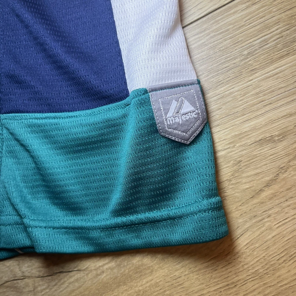 Show your support for the Seattle Mariners with this vintage 90s Majestic pullover jersey. Featuring the team's iconic blue color scheme, this unisex adult jersey is perfect for any baseball fan. The jersey is officially licensed by Major League Baseball (MLB) and is made in Indonesia with high-quality materials. With a 26-inch chest and a 21-inch collar to the bottom, this jersey is the perfect size for any fan. It's great for wearing to games or just out and about to show off your team spirit. The jersey has a capacity of 12 oz and features the Seattle Mariners team logo on the front. Get yours today and show your support for one of the most iconic teams in baseball history.