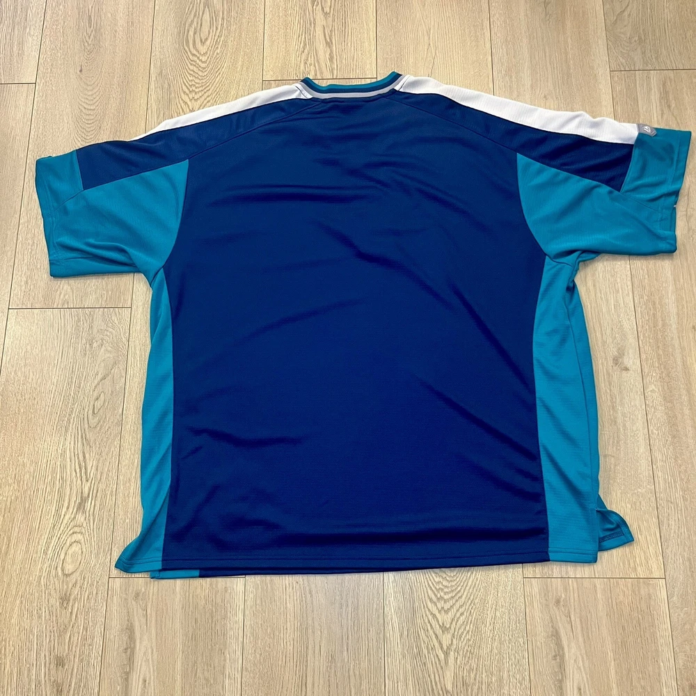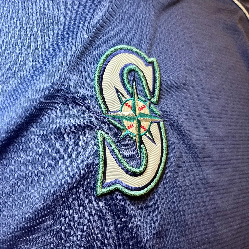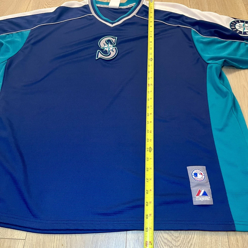 Product: Jersey Team: Seattle Mariners Officially Licensed: Yes Country/Region of Manufacture: Indonesia Color: Blue Player: Team Sport: Baseball Brand: Majestic Capacity: 12 oz Gender: Unisex Adult League: Major League (MLB) Pre & Post Season: Regular Season Size: 26 in Chest 21 in Collar To The Bottom