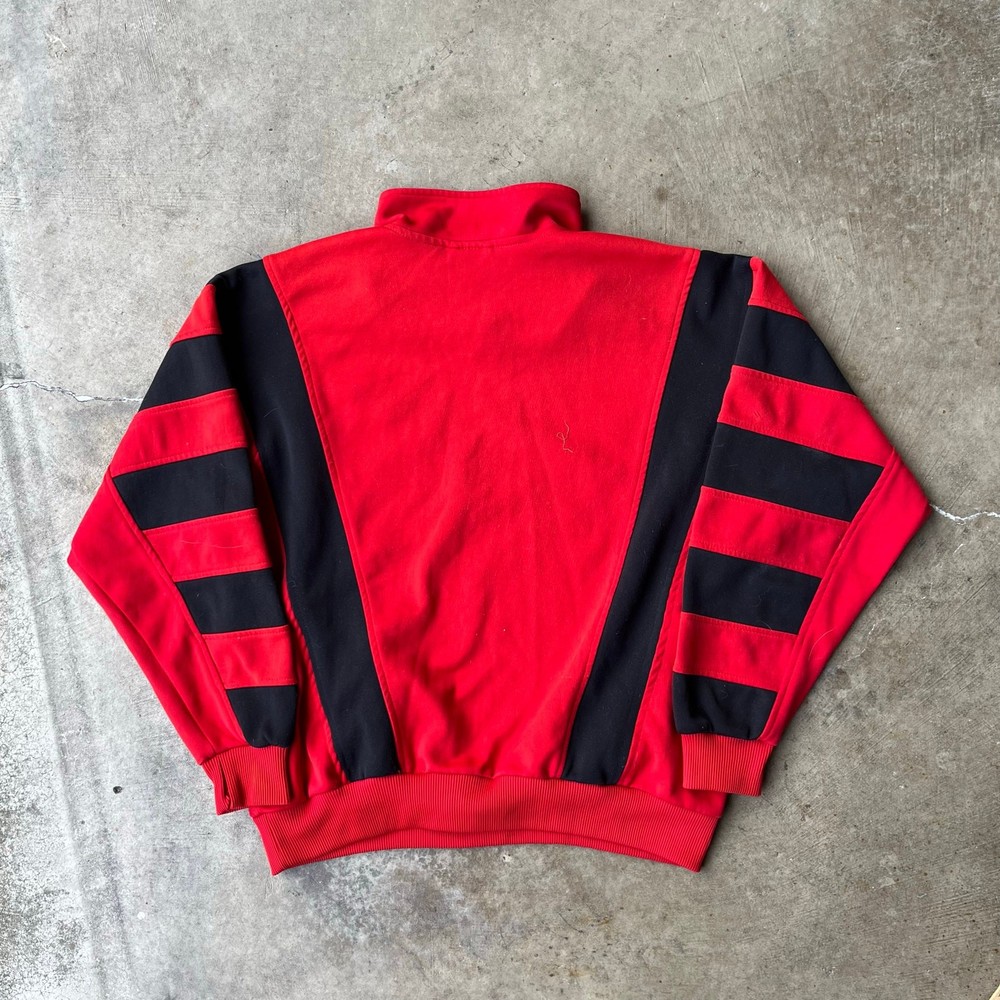 VINTAGE 90S ADIDAS SWEATSHIRT 1/4 ZIP CREWNECK SMALL RED BLACK EUROPEAN beautiful color measurements, and tag shown in pictures item is preworn and may have defects shipping every wednesday and sunday
