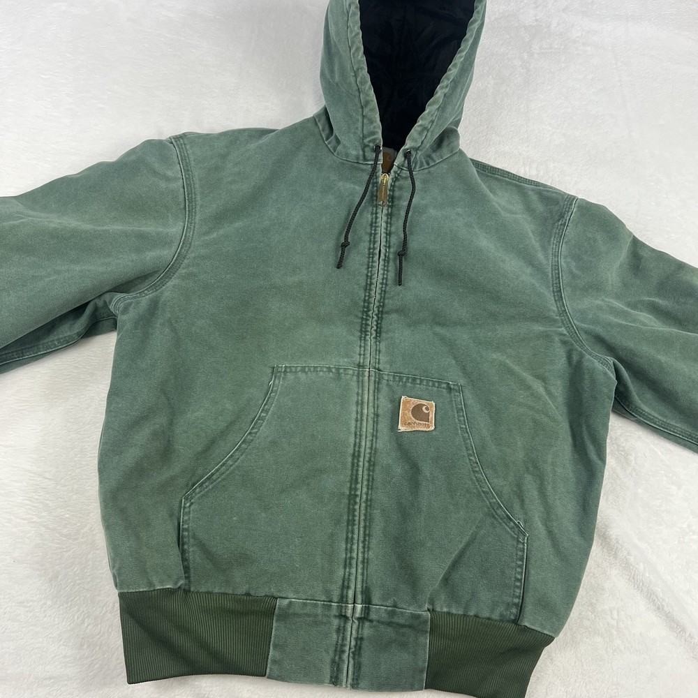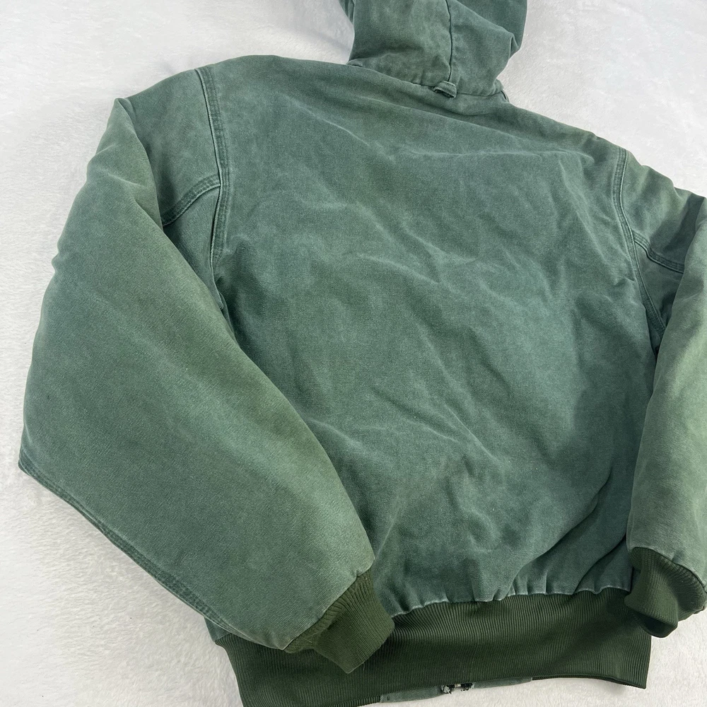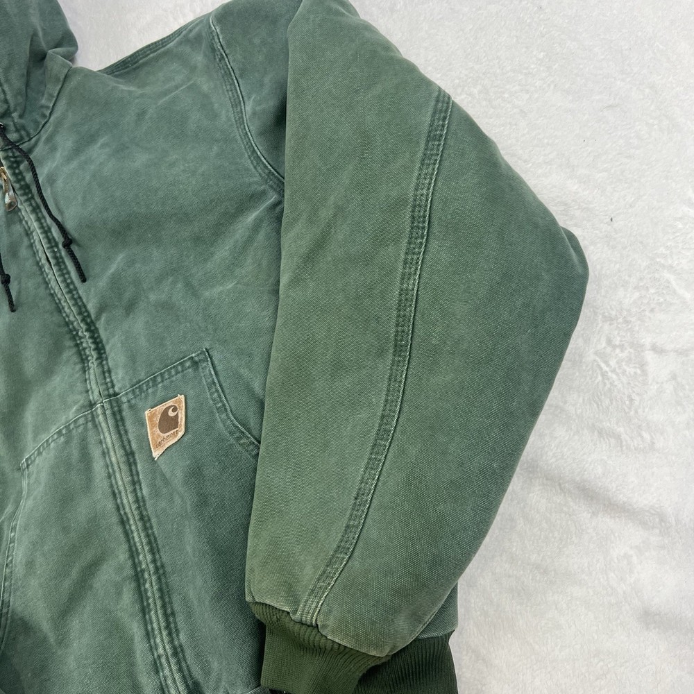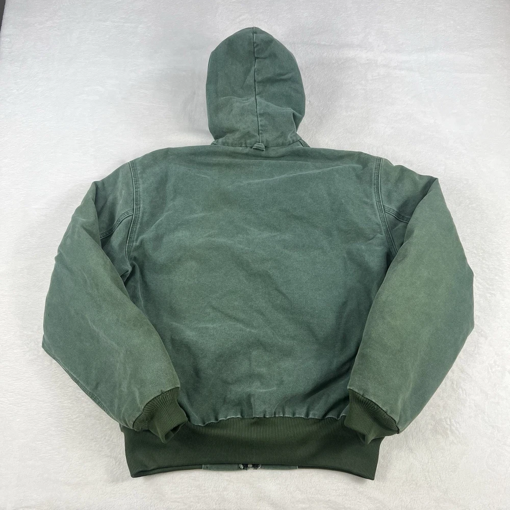 Color: Aspen Green Vintage: Yes Garment Care: Machine Washable Fit: Regular Country/Region of Manufacture: United States Model: carhartt JQ294 Performance/Activity: Hiking, Hunting, Walking Type: Jacket MPN: JQ294 Fabric Type: Canvas Style: Bomber Jacket Jacket/Coat Length: Short gtin13: does not apply Season: Fall, Spring, Summer, Winter Size Type: Regular Theme: 90s, Outdoor, USA, vintage, streetwear, union made, y2k, outdoorsmen, street fashion, comfort, faded, workwear, work, construction Lining Material: Polyester Outer Shell Material: Cotton Size: M Occasion: Business, Casual, Formal, Party/Cocktail, Travel, Workwear Closure: Zip Personalize: No Insulation Material: Polyester Handmade: No UPC: does not apply Department: Men Product Line: Carhartt JQ294 Brand: Carhartt Accents: Logo, Quilted, Zipper Features: Hooded Pattern: Solid