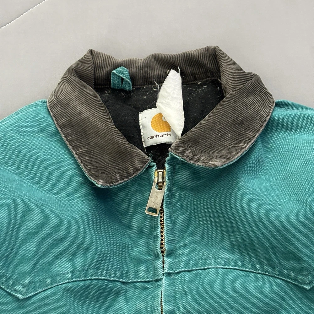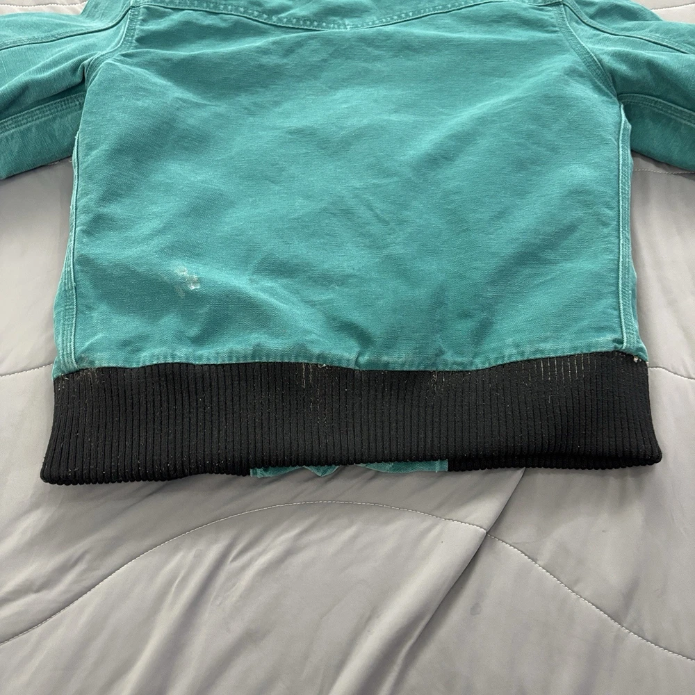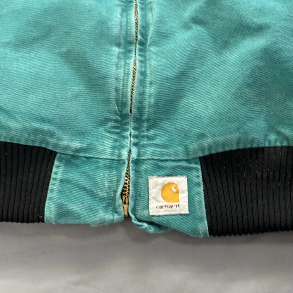 Vintage 90s Carhartt Santa Fe Quilt-Lined Teal Canvas Jacket Size Small