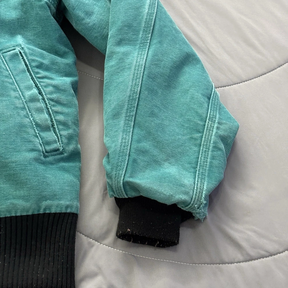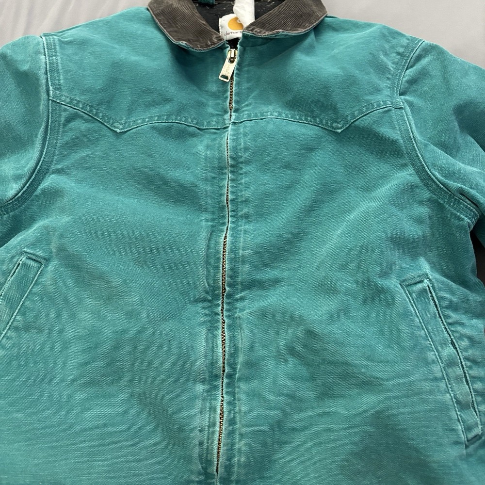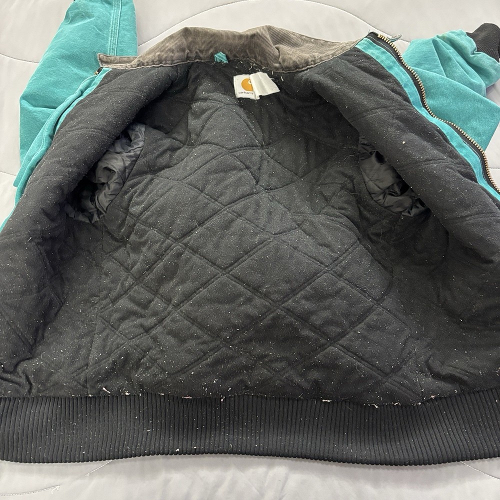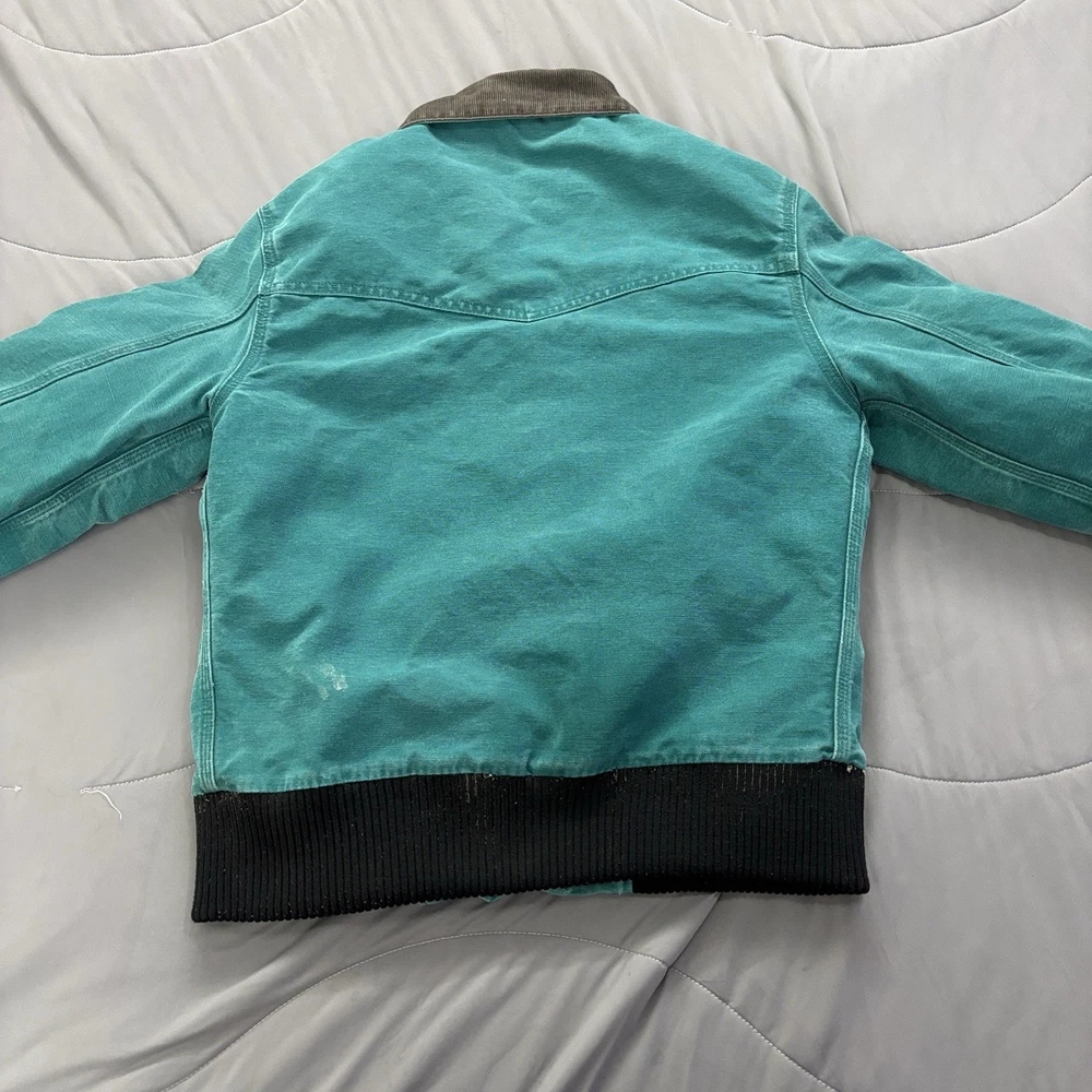 Vintage 90s Carhartt Santa Fe Quilt-Lined Teal Canvas Jacket Size Small