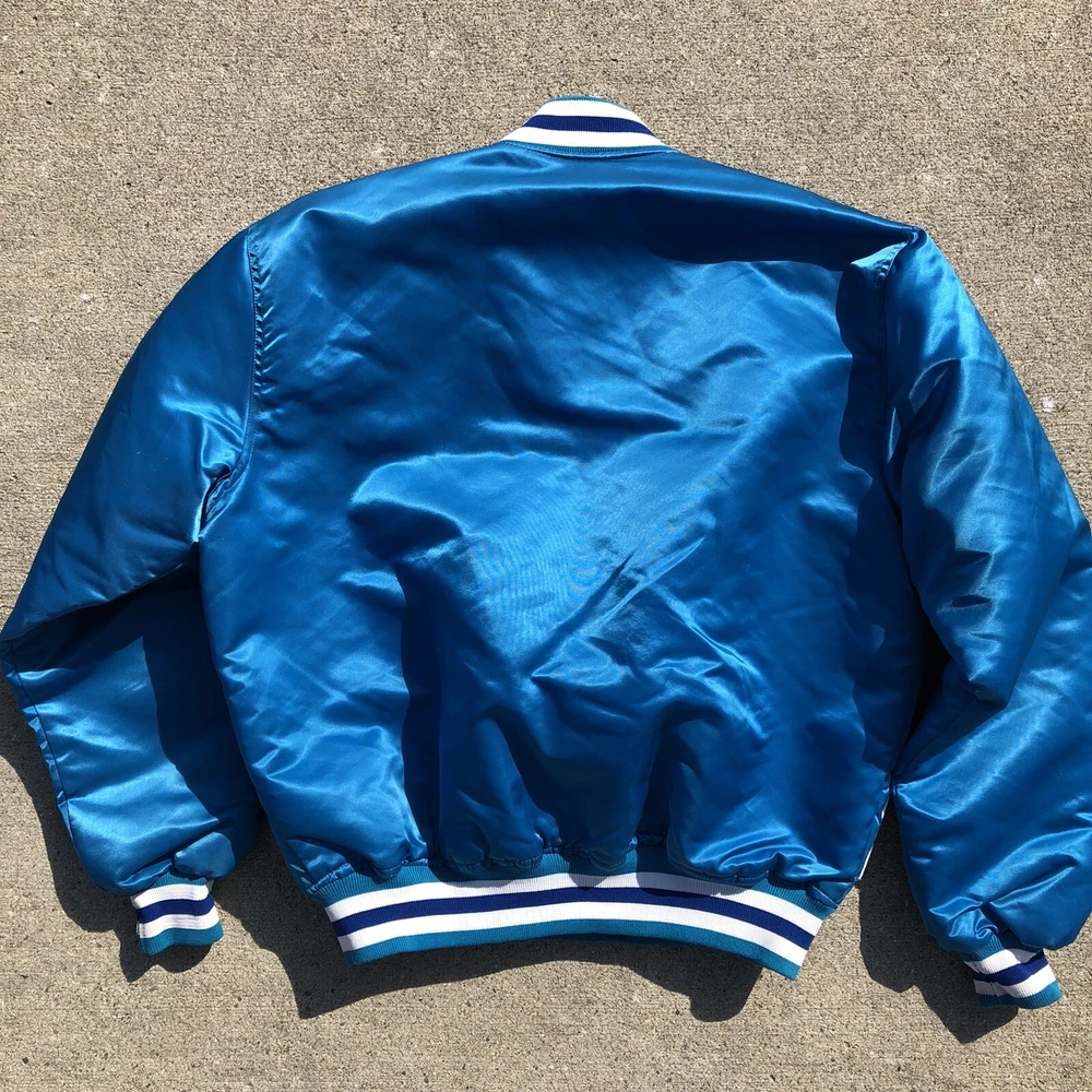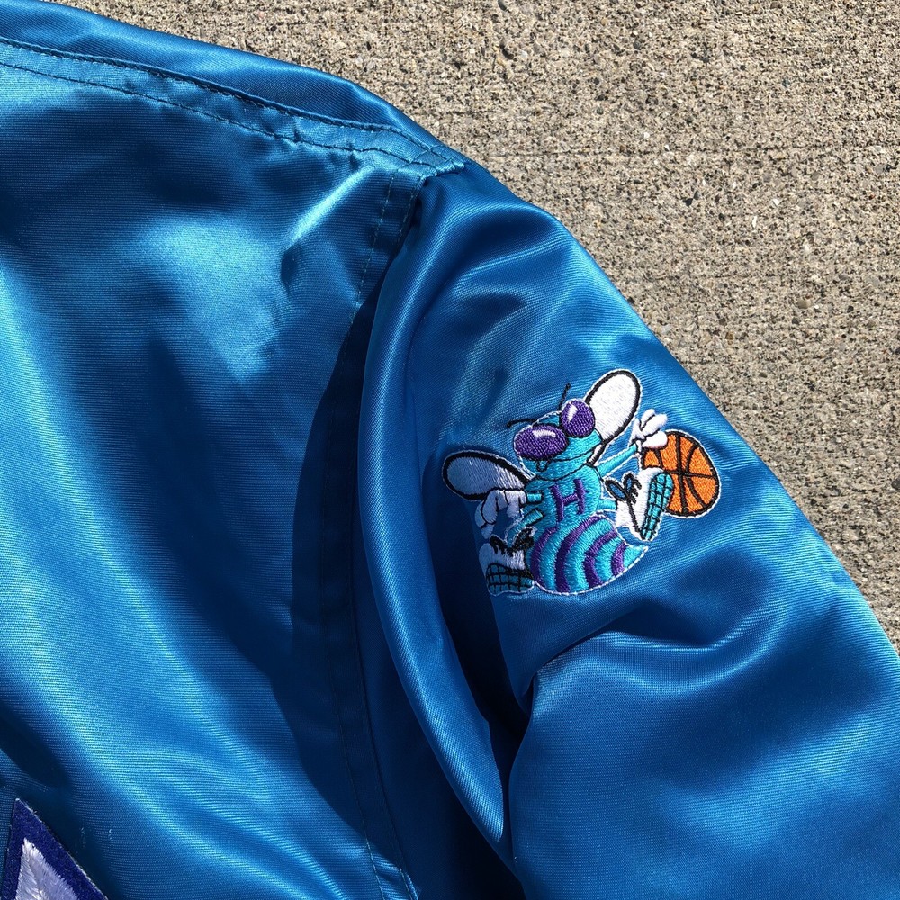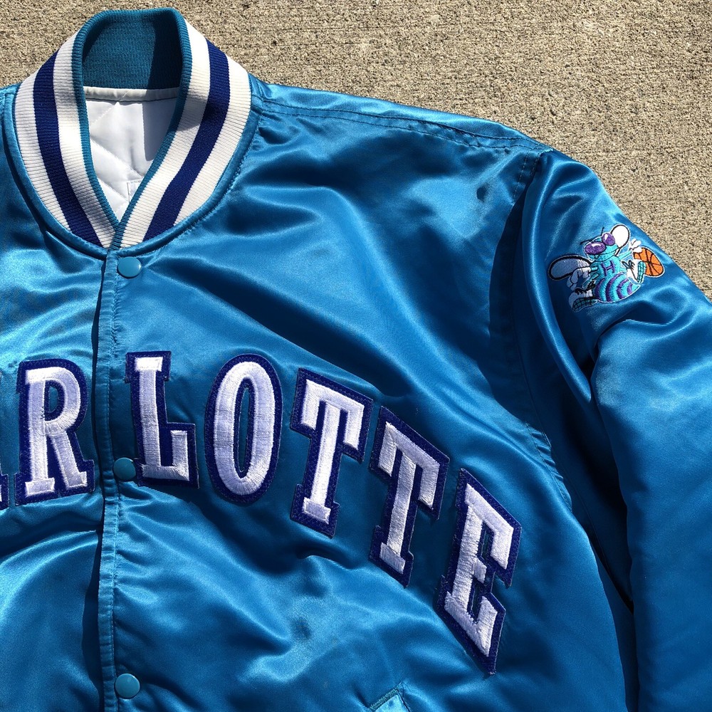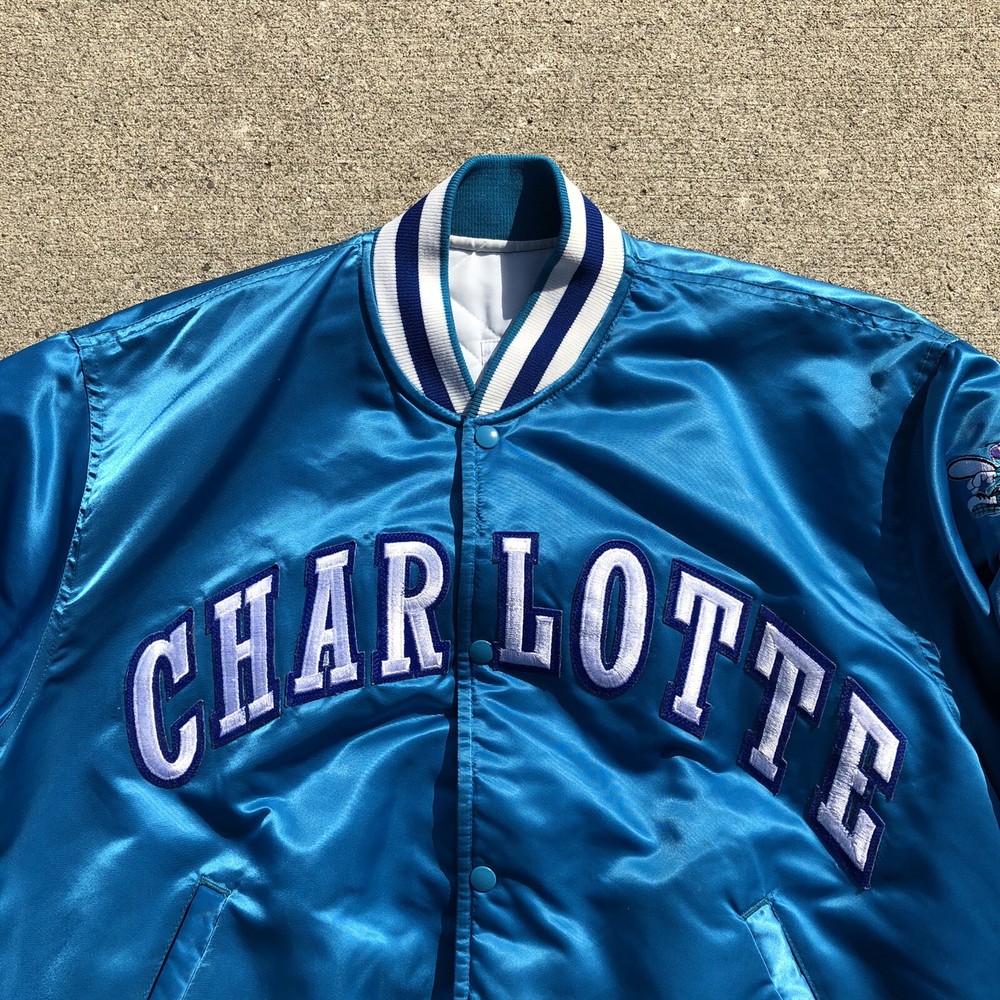 Vintage 1990s beautiful Charlotte Hornets satin Starter jacket Reads XL Excellent vintage condition with no flaws found Measurements taken laying flat Pit to pit 27 Shoulders 22 Sleeve 26.5 Length 27 #90s #starter #charlotte #hornets #satin