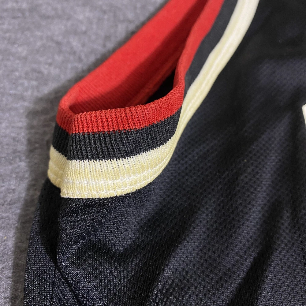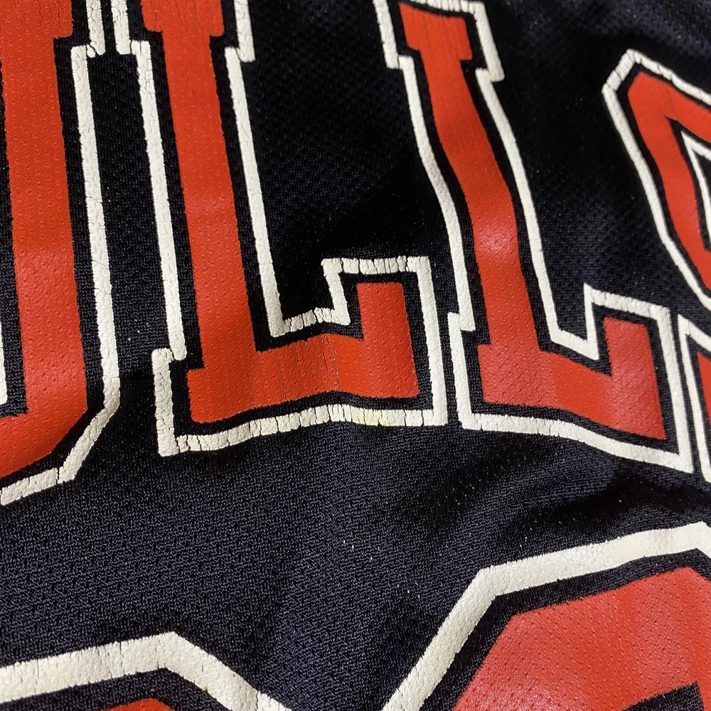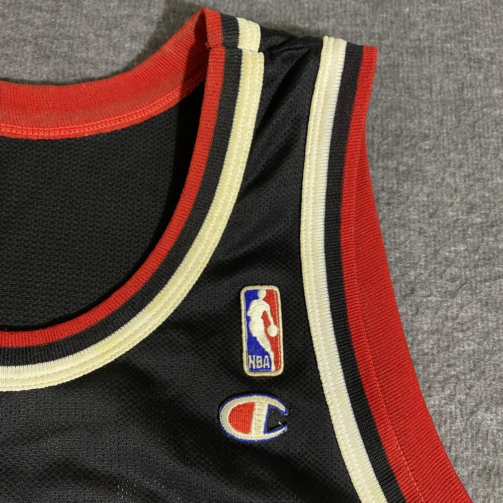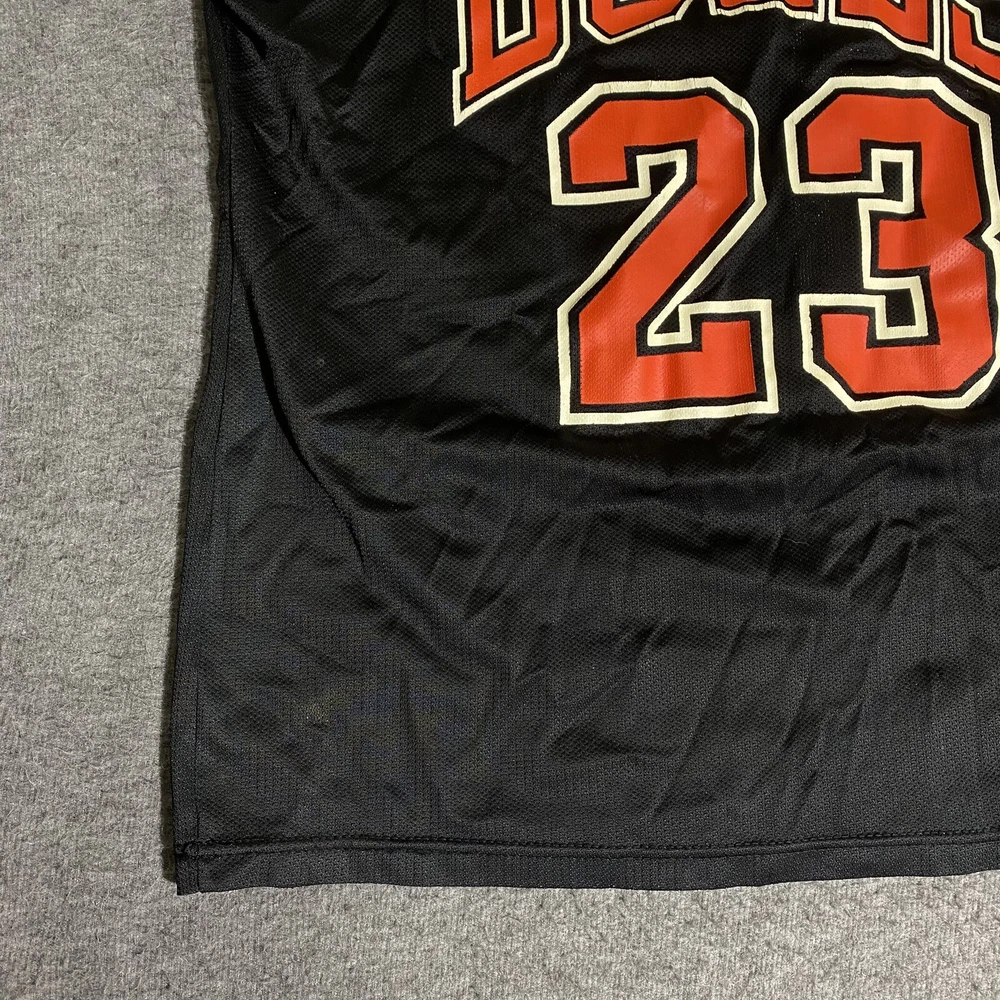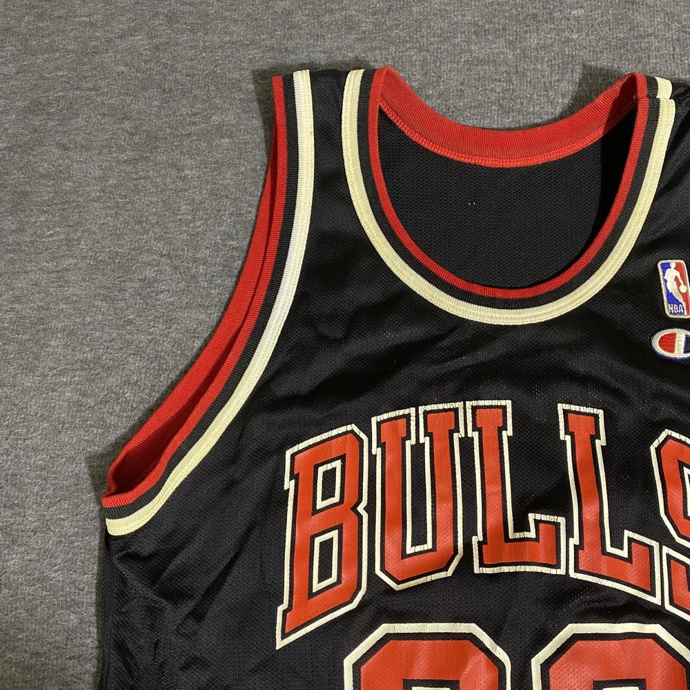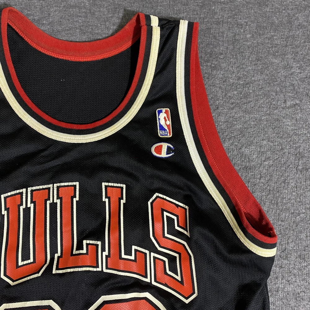 Rare Vintage Champion 90s Made in USA Chicago Bulls Michael Jordan Jersey Adult Men’s Size 44 Large. Good used condition. Has obvious signs of wear and fade. Yellowing on the white on sleeves and numbers. Has some cracking and the neck tag has been removed. All flaws shown in photos. Besides yellowing, no major stains, no rips, holes, tears, or major damage. Measurements in photos and description! MEASUREMENTS Pit to pit: 21 inches Length: 29.5 inches Shown in photos! ** This item has been washed and cleaned per eBay’s used clothing policy. ** Ships within 24 hours of purchase via USPS Ground Advantage.