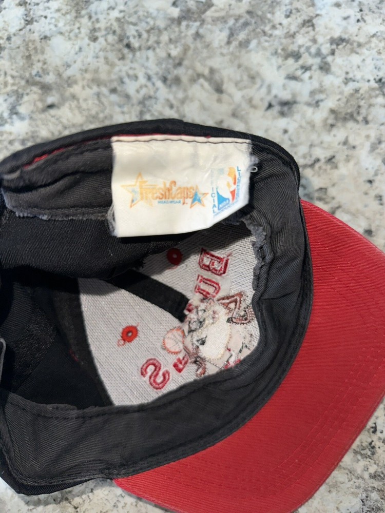 Show your love for the Chicago Bulls with this vintage 90s Taz snapback cap. The black hat features the iconic Bulls logo and is perfect for any young fan looking to represent their favorite team. The one size fits all design makes it easy for anyone to wear, while the unisex children gender makes it a great gift for any young basketball fan. This NBA hat is perfect for any basketball-NBA fan, especially those who love the Chicago Bulls. The hat is made of high-quality materials and is a great addition to any fan's collection. The Taz player adds a fun and unique touch to the hat, making it a great conversation starter. Get yours today and show your love for the Bulls! Used and loved as showed in pictures. Tag is worn.
