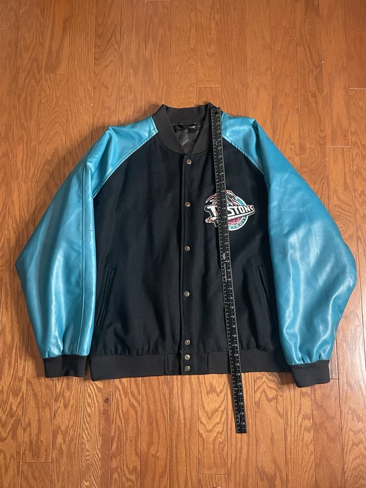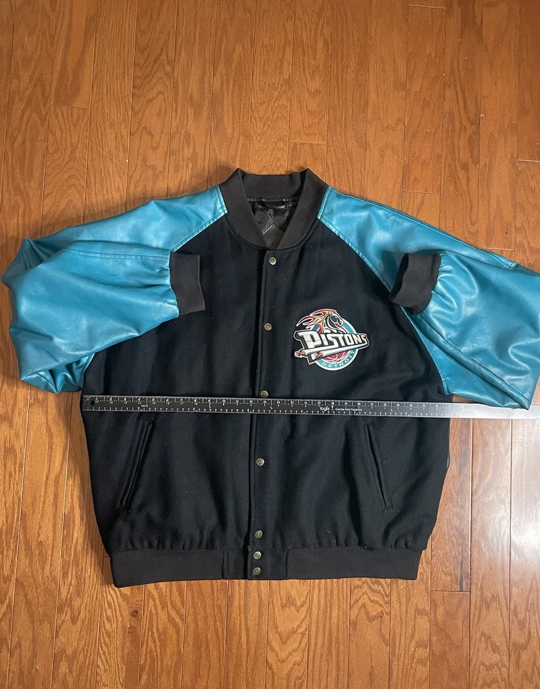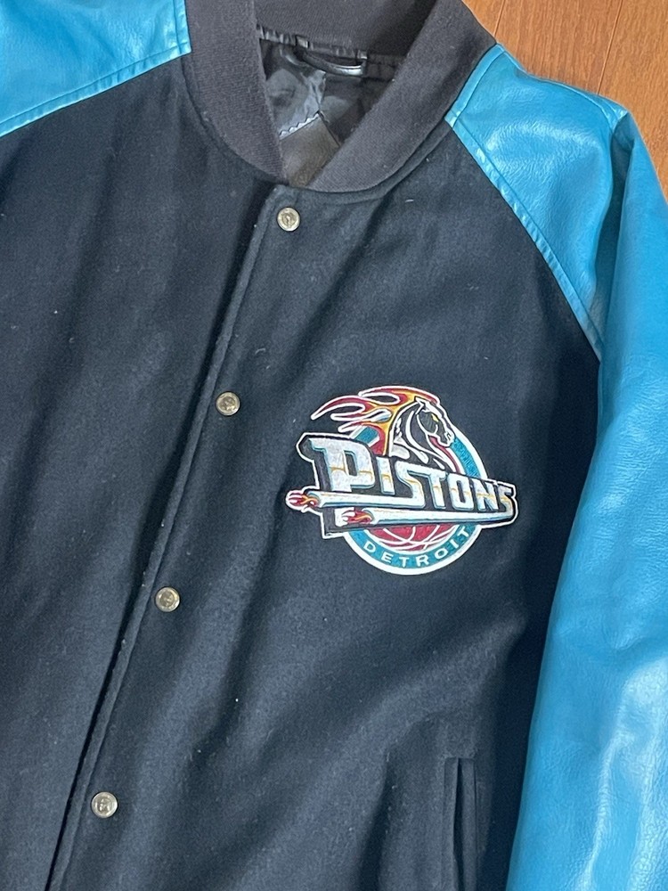 This Vintage Detroit Pistons Starter Varsity Jacket from the 90s is a stylish and nostalgic piece for fans of the NBA team. Officially licensed by Harbortec, this jacket features the iconic teal and black colors of the Detroit Pistons. The size is 2XL, making it suitable for men who want to show off their team pride in a retro way. Perfect for wearing during the regular season games or just to add a touch of basketball history to your wardrobe.