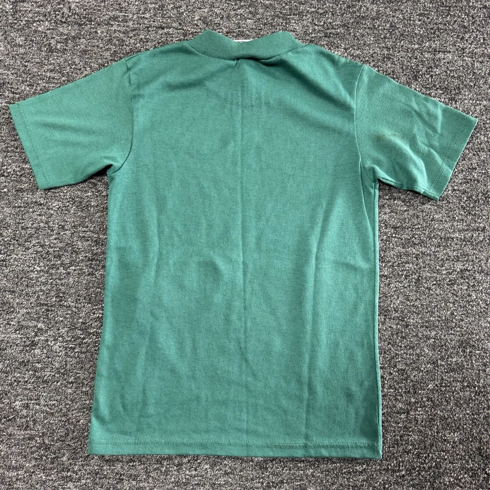 This Vintage 90s Dinosaur Information Green Art T-Shirt in size S (8) is a perfect choice for young boys interested in dinosaurs, art, and retro themes. The short sleeve, crew neck shirt features a graphic print of a dinosaur scene, adding an element of fun and education to their wardrobe. Made by Garan, the pullover T-shirt is ideal for summer, fall, and spring seasons, making it a versatile and stylish addition for any young boy's closet. The photos are the BEST indication of the condition please use the presented photos before purchasing the item. Thank you for checking out our page and let us know if you have any questions!