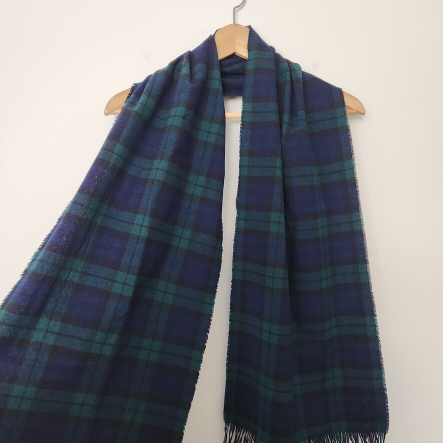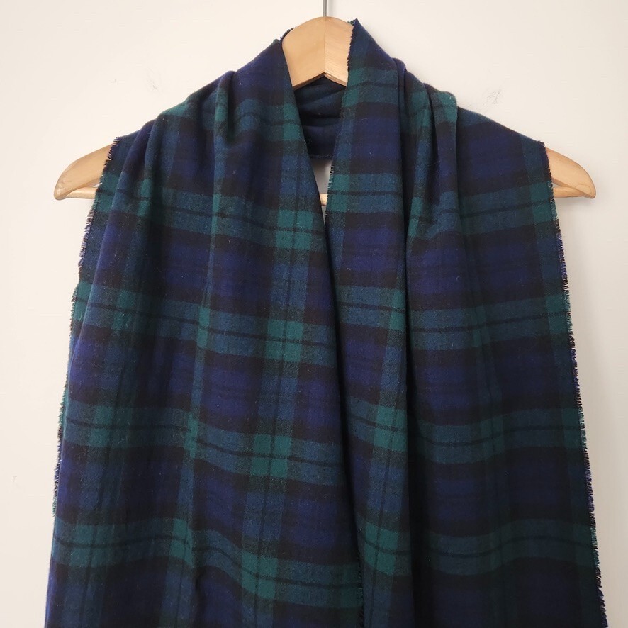 Vtg 90s Plaid Scarf Fringe Green Blue Men's Cozy Winter Preppy Check 12 x 60 Vintage 90s fringe plaid scarf. - Classic plaid pattern of dark green and blue - Fringe ends - Measures approximately 12 x 60 inches - From the 90s. Minor wear and slight irregularity in fabric as pictured, overall good condition. - No brand or materials tag present, but feels like wool. classic / preppy / cozy / winter / wool scarf / cabincore / western / apres ski / mens / unisex