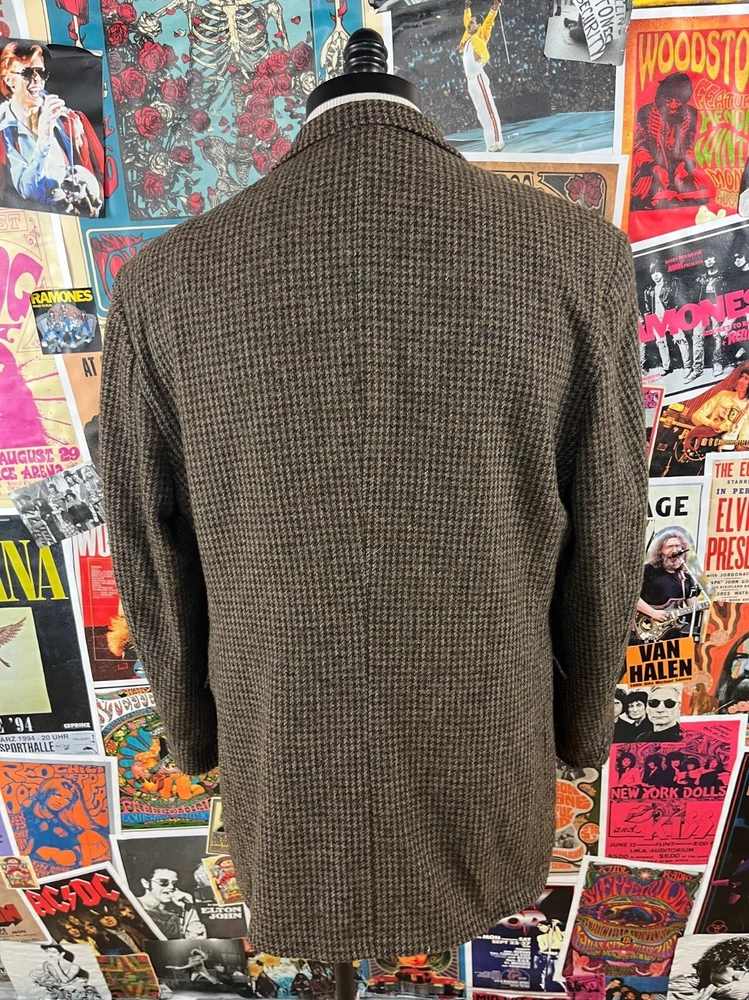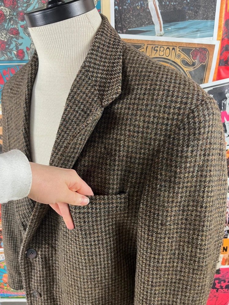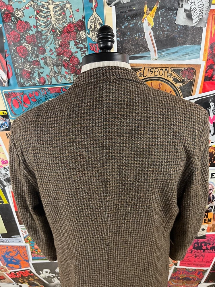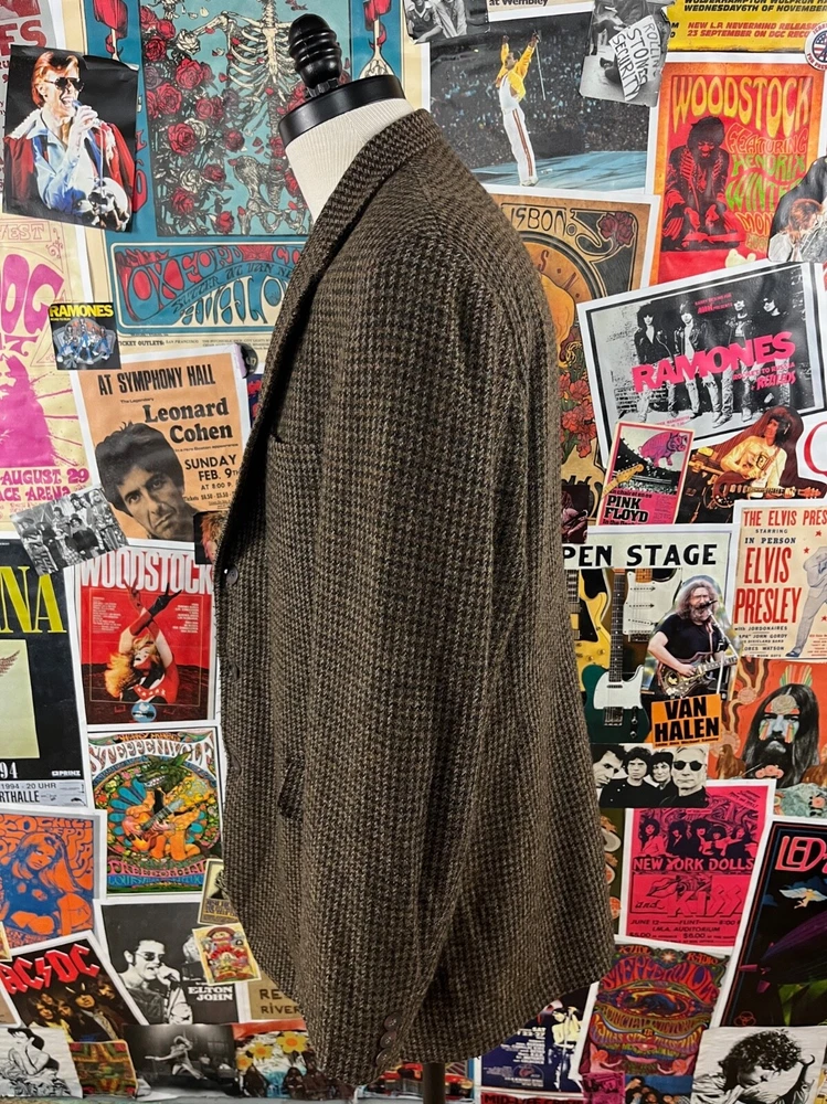 Vintage 90s Haggar Brown Tweed Houndstooth Blazer 44 Long for Men