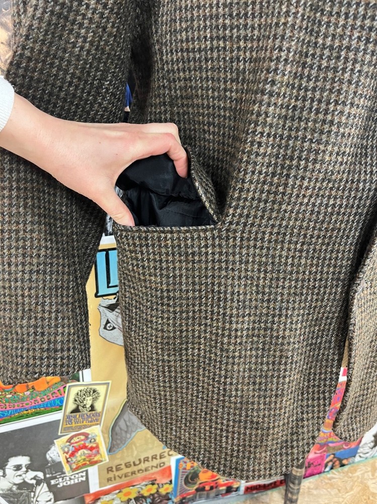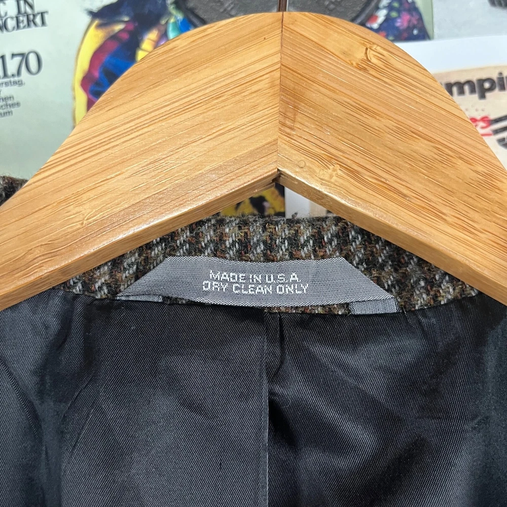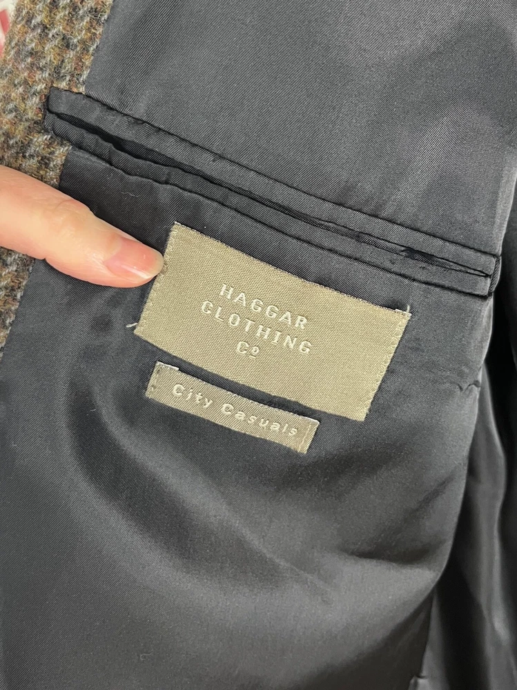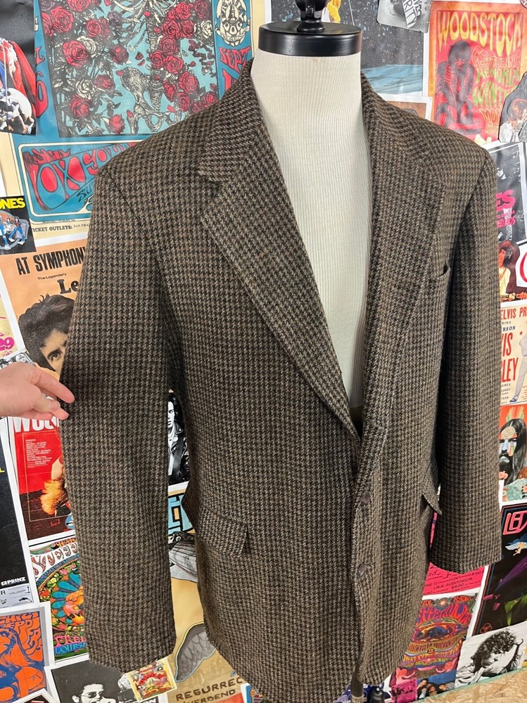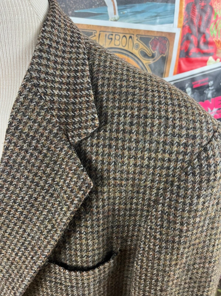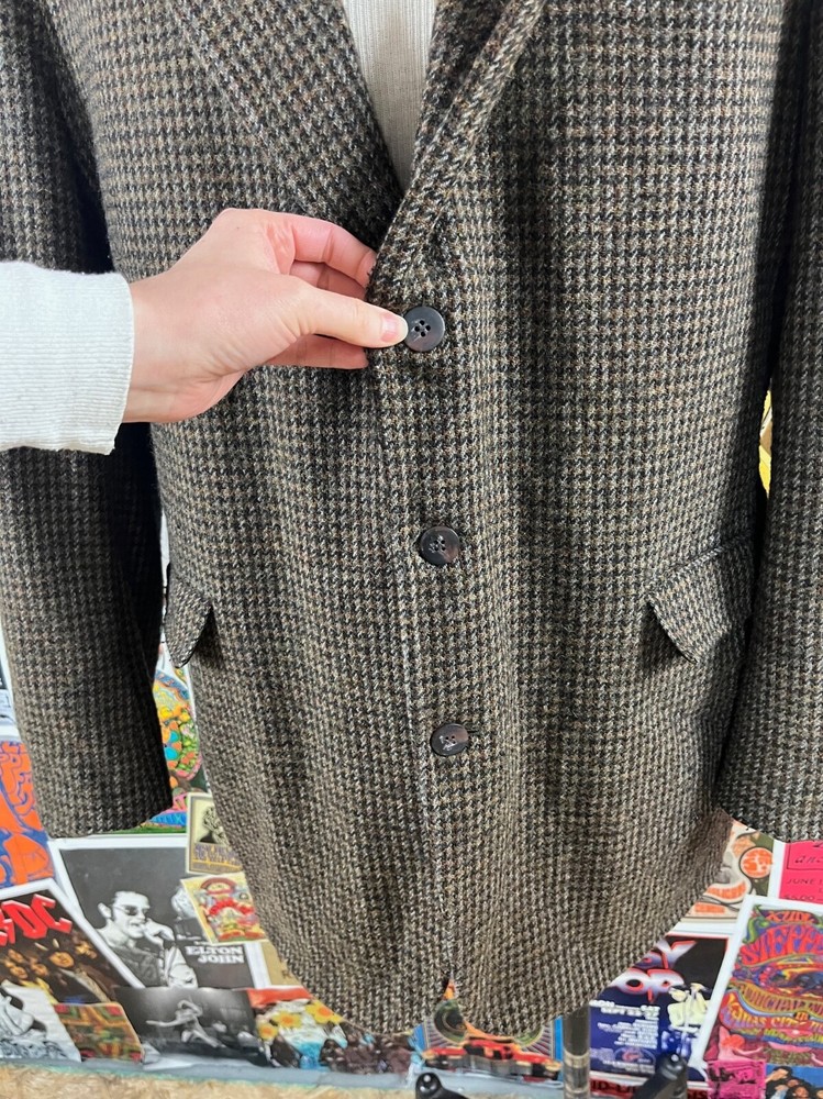 Front Type: Flat Front Jacket Vent Style: Single-Vented Jacket Sleeve Button Style: Three-Button Brand: Haggar Personalize: No Size: 44L Jacket/Coat Length: Regular Handmade: No Color: Brown Chest Size: 44 Lining Material: Wool Blend Style: N/A Leg Style: N/A Waist Size: 43 in Type: Blazer Jacket Front Button Style: Three-Button Fit: Regular Occasion: Business, Casual, Formal, Party/Cocktail, Travel, Wedding Jacket Lapel Style: Notch Number of Pieces: 1 Piece Size Type: Regular Country/Region of Manufacture: United States Garment Care: Dry Clean Only Vintage: Yes Season: Fall, Spring, Summer, Winter Material: Wool, Pure Wool Features: Inner Pockets Theme: 80s, American Made, Classy, Dad, Dadcore, Grandpa, Grandpacore Jacket Cut: Single-Breasted Department: Men Seller Notes: “Good” Fabric Type: Tweed Pattern: Houndstooth