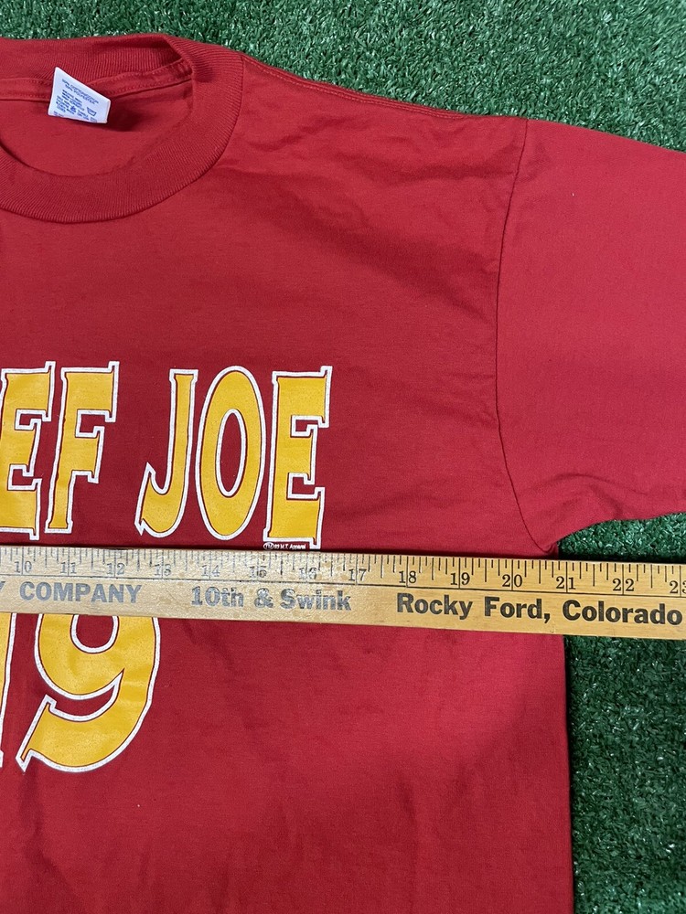 Show your love for the Kansas City Chiefs and one of their greatest quarterbacks of all time, Joe Montana, with this vintage jersey T-shirt. The shirt features the iconic Joe Montana in action, with his name and the team logo prominently displayed. It is made of high-quality materials and is designed to provide comfort and durability, perfect for any football fan. This shirt is a must-have for any fan of the NFL and the Kansas City Chiefs. It is a great addition to any sports memorabilia collection and is sure to be a conversation starter. Don't miss out on the opportunity to own a piece of football history with this vintage Joe Montana jersey T-shirt.