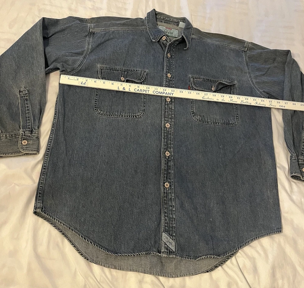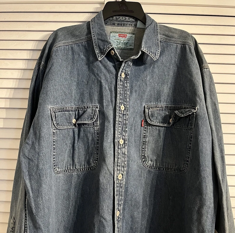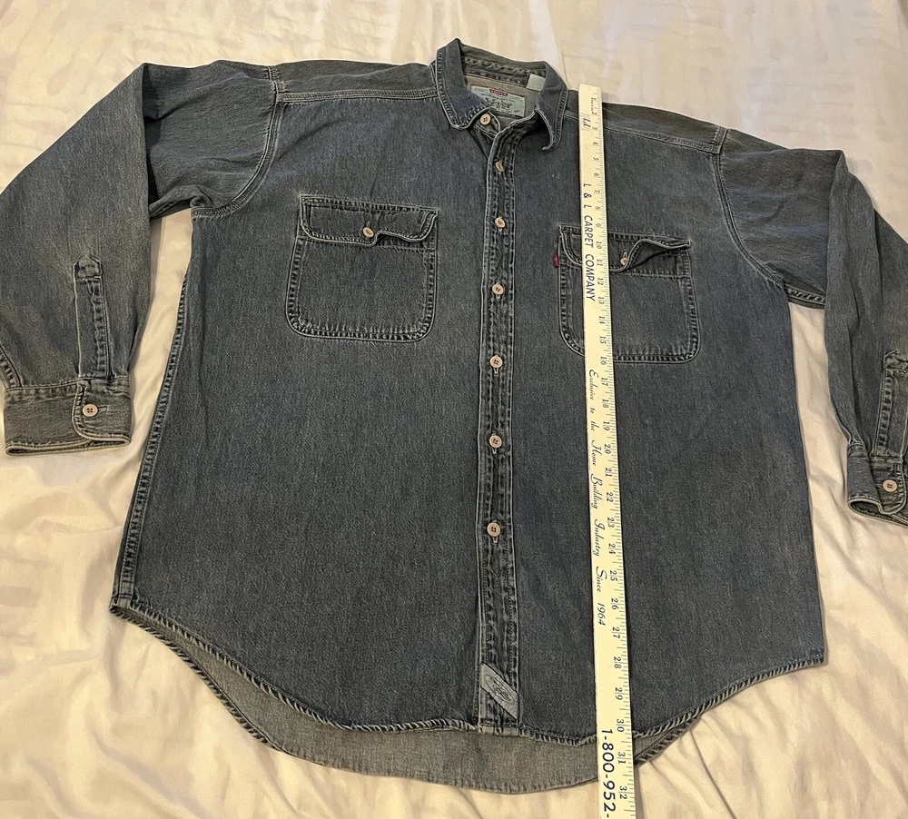 This vintage Levi's Green Label denim shirt is a must-have for any fashion-forward man's wardrobe. With its classic blue color and 90s theme, it's perfect for casual occasions or even a day at the office. The shirt features long sleeves, a button-up design, and is made from high-quality denim fabric that will stand the test of time. The shirt is available in a size L and is perfect for regular-sized men. The red tag Levi's logo adds a touch of authenticity to this vintage piece. Don't miss out on the chance to own a piece of fashion history.