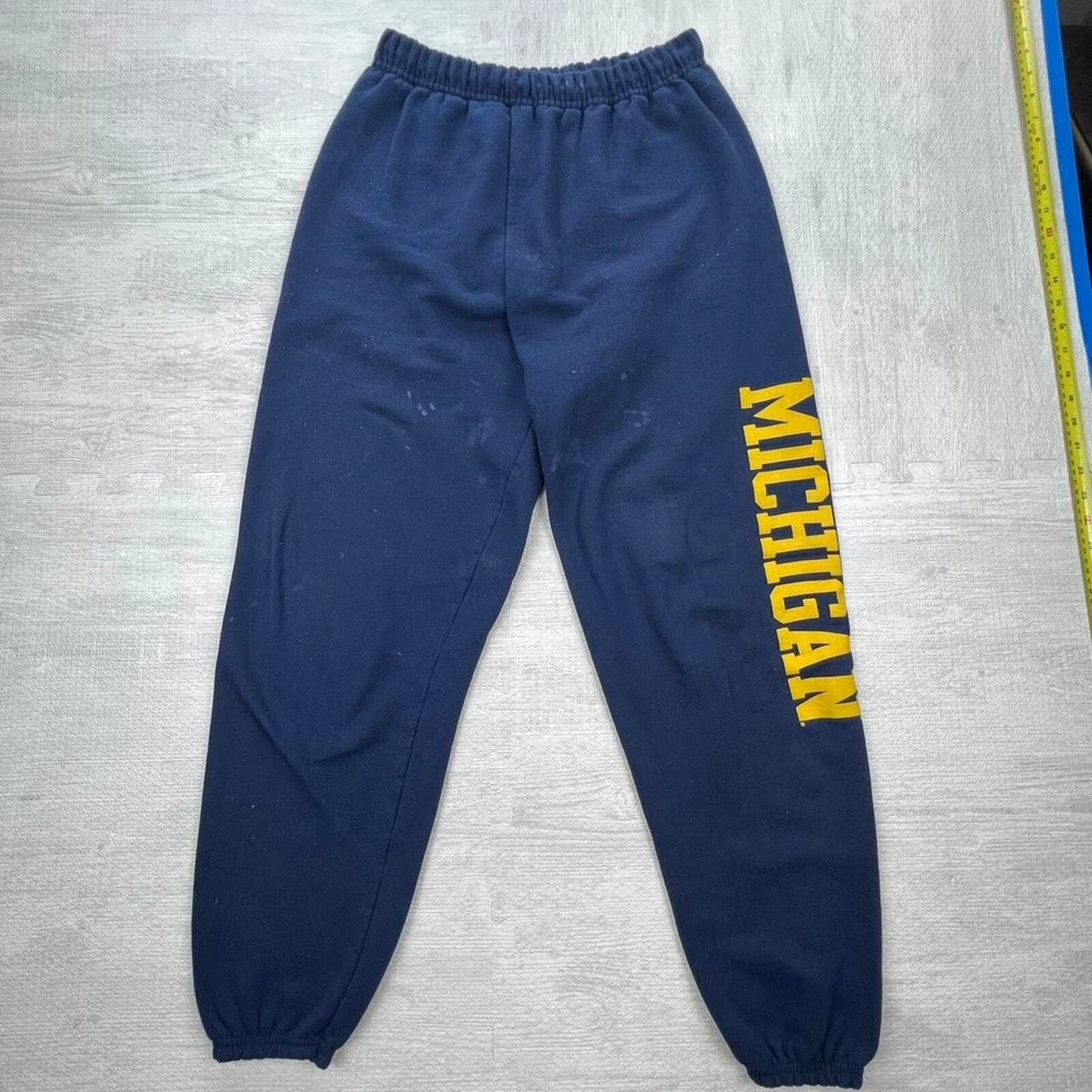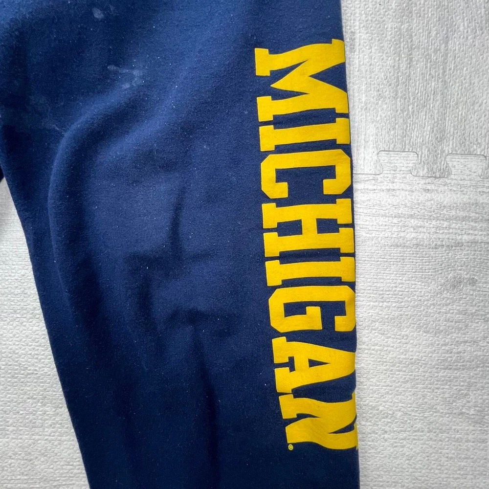 Vintage 90s University of Michigan wolverines navy yellow graphic sweatpants NCAA college sportswear streetwear retro boho some stains Size: L Inseam: 27 Length: 39