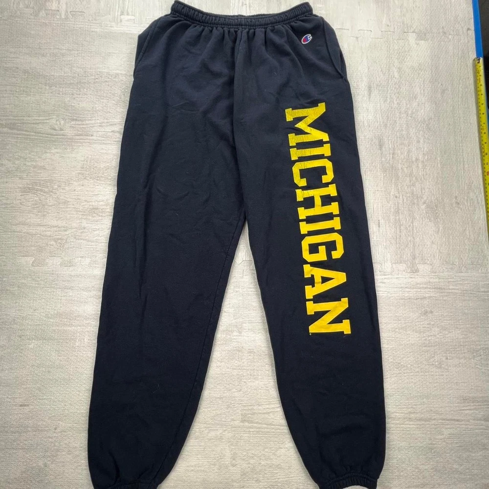 Vintage 90s University of Michigan wolverines navy yellow graphic sweatpants NCAA college sportswear streetwear retro boho Size: L Inseam: 30 Length: 42