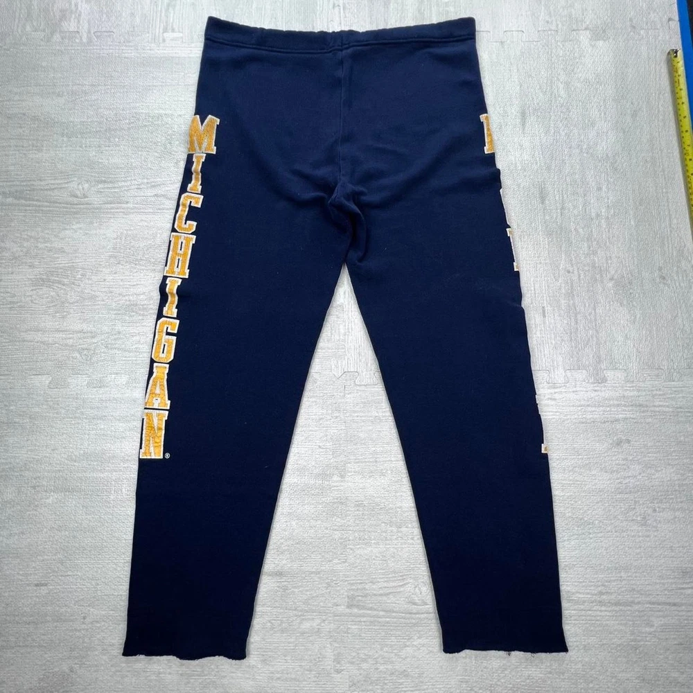 Vintage 90s University of Michigan wolverines navy yellow graphic sweatpants NCAA college sportswear streetwear retro boho Russell athletic Size: M Inseam: 27 Length: 39