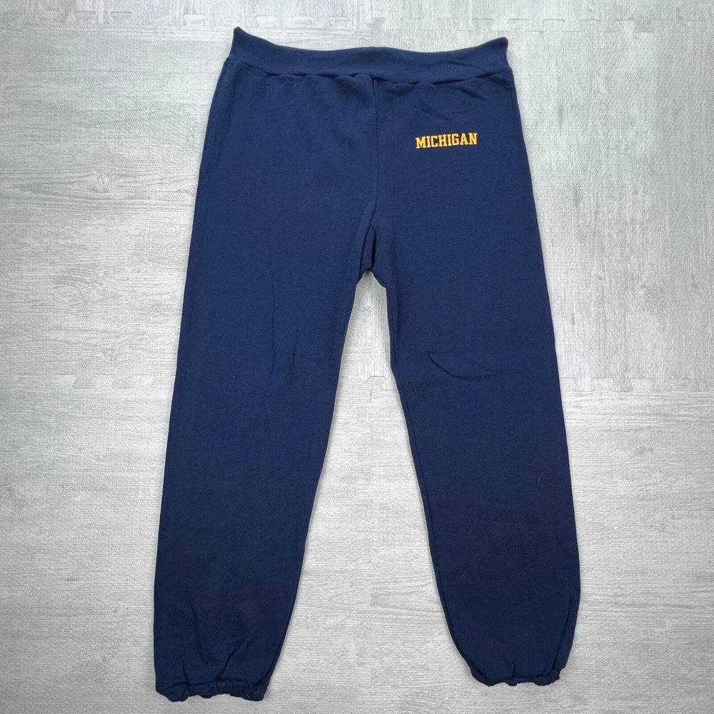 Vintage 90s University of Michigan wolverines navy yellow graphic sweatpants NCAA college sportswear streetwear retro boho Size: M Inseam: 25 Length: 40