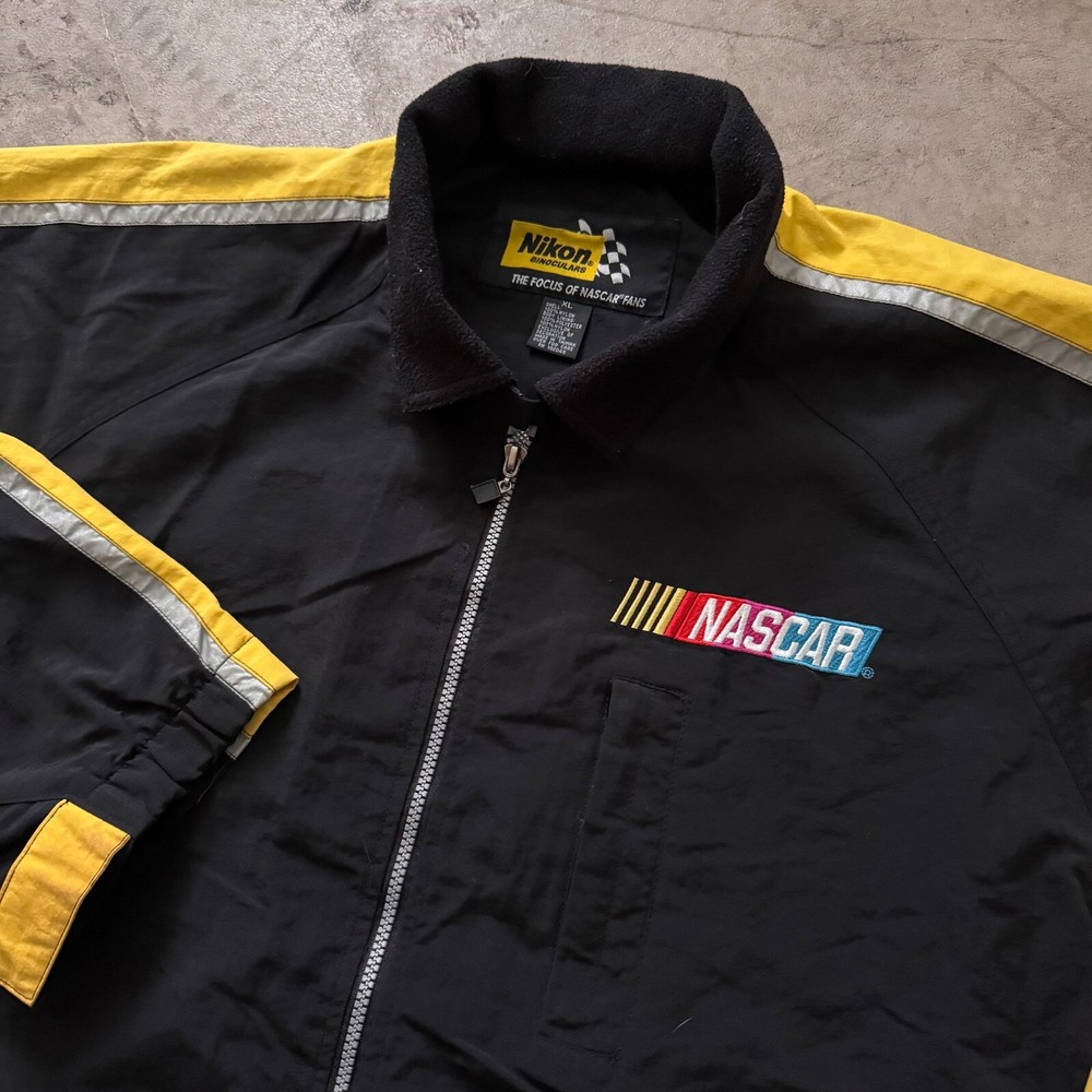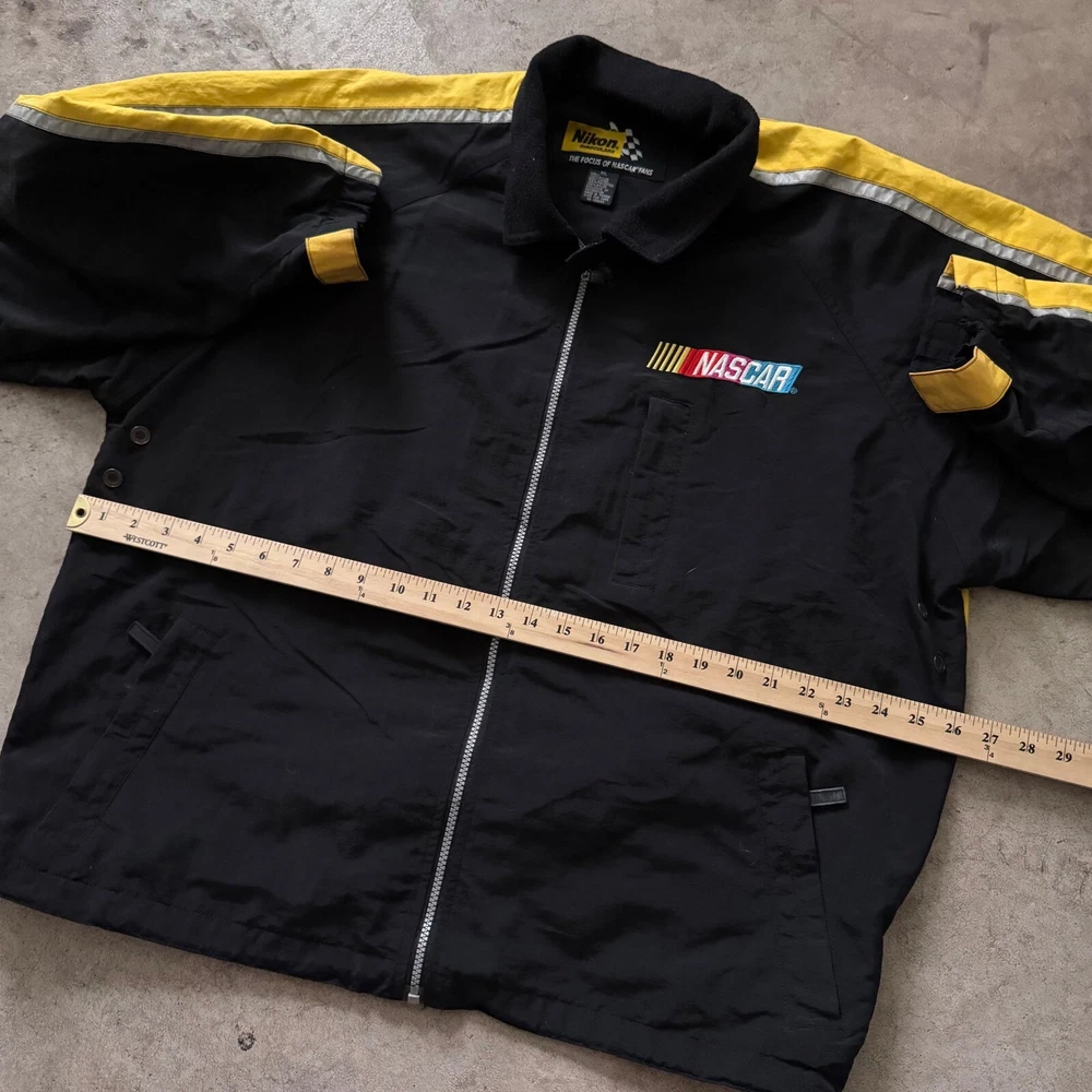 This vintage-inspired NASCAR jacket is a total throwback gem! The bold black and yellow design with reflective accents looks sharp, and the full-zip windbreaker is super lightweight yet durable. Love the classic Nikon and NASCAR logos—perfect for racing fans or anyone who loves retro sporty style. The fit is comfortable, and the microfiber material feels great. Definitely a standout piece for casual wear or showing off some 90s nostalgia!