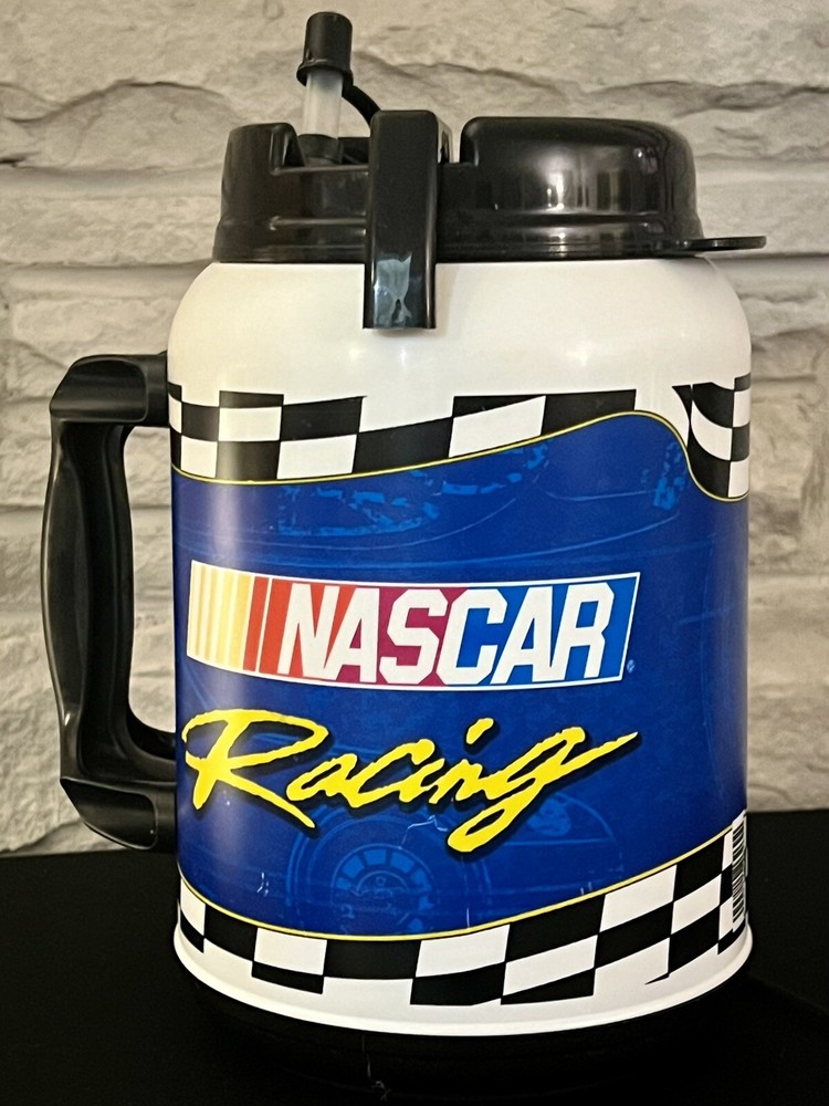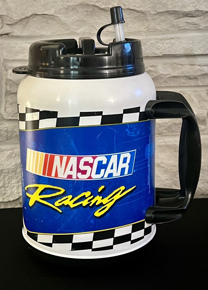 This 64oz NASCAR Racing Travel Handle Mug Cup by Whirley is a must-have for any NASCAR fan. The multi-color cup features the NASCAR Racing team logo and is officially licensed. The cup is perfect for both hot and cold beverages, making it a versatile addition to your collection. Its travel handle design makes it easy to carry around, making it ideal for tailgating, camping, or any outdoor activity. This rare and new unsealed cup is made in the United States with high-quality materials, ensuring its durability and longevity. The cup is suitable for both unisex adults and NASCAR enthusiasts, making it an excellent item to gift to your loved ones. Get this NASCAR Racing Travel Handle Mug Cup and show off your love for the sport in style. Couple scuffs see pictures