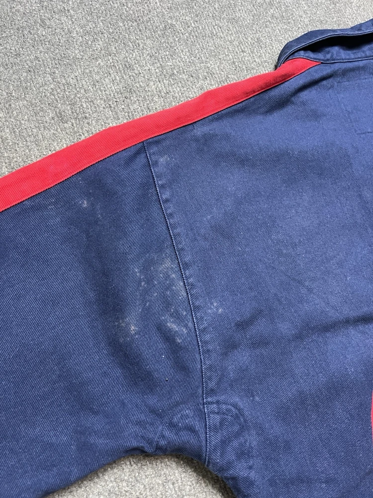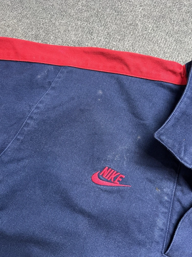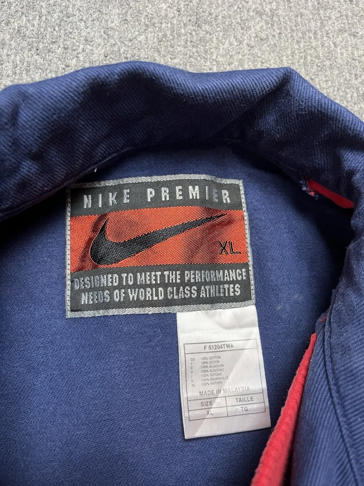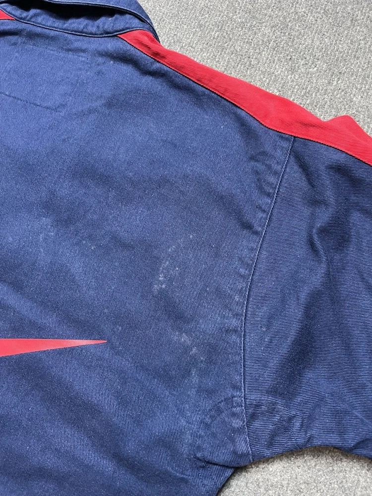 The Vintage 90's Nike Arsenal Football Gunnes Jacket is a nostalgic piece of fan apparel for soccer enthusiasts. This XL-sized jacket in a vibrant blue color features the iconic Nike swoosh and Arsenal team logo, perfect for any Arsenal supporter looking to show their team pride. Designed for men, this jacket is a stylish and comfortable way to represent your favorite international club. Chest-60 Length-69 Shoulders-54 Sleeve length-60