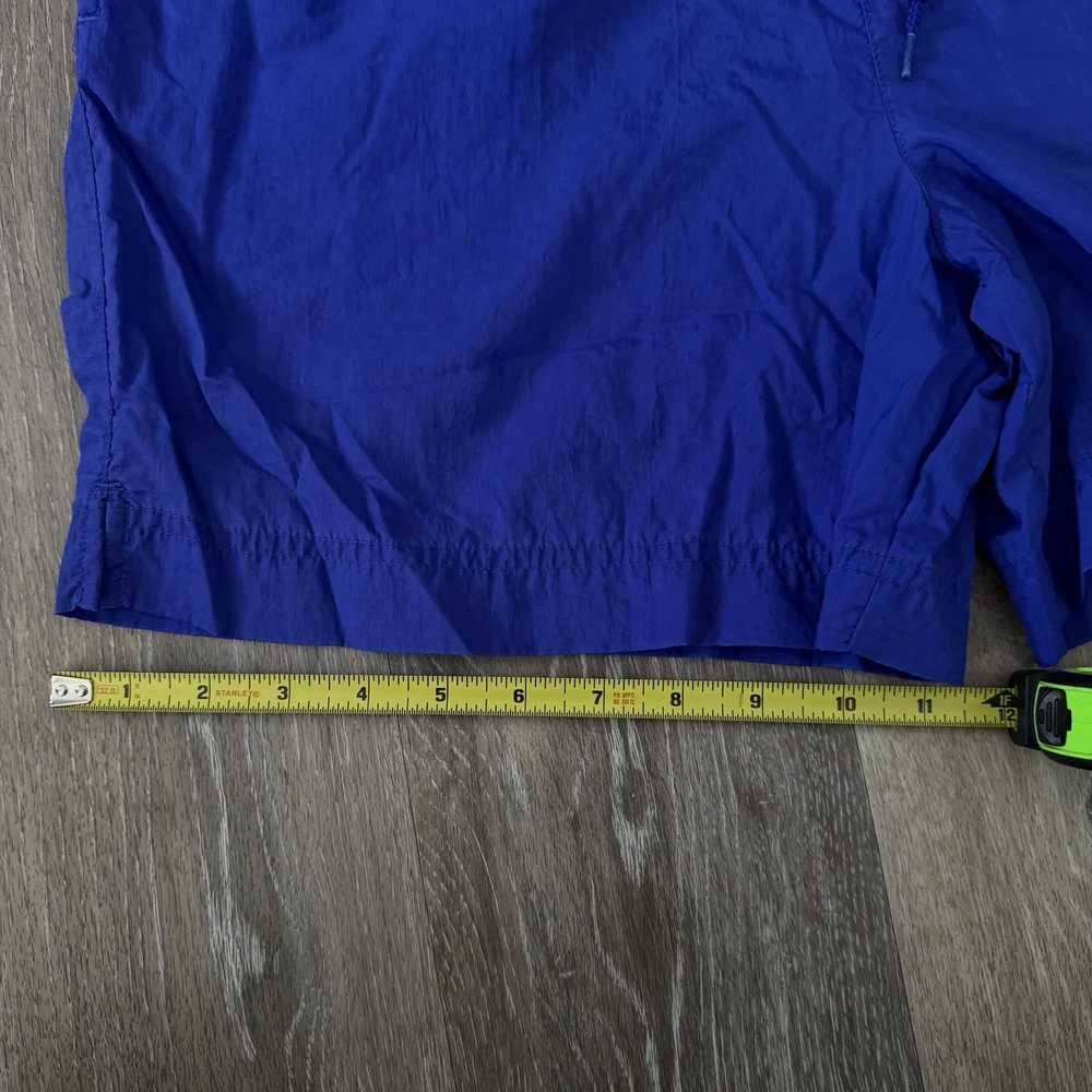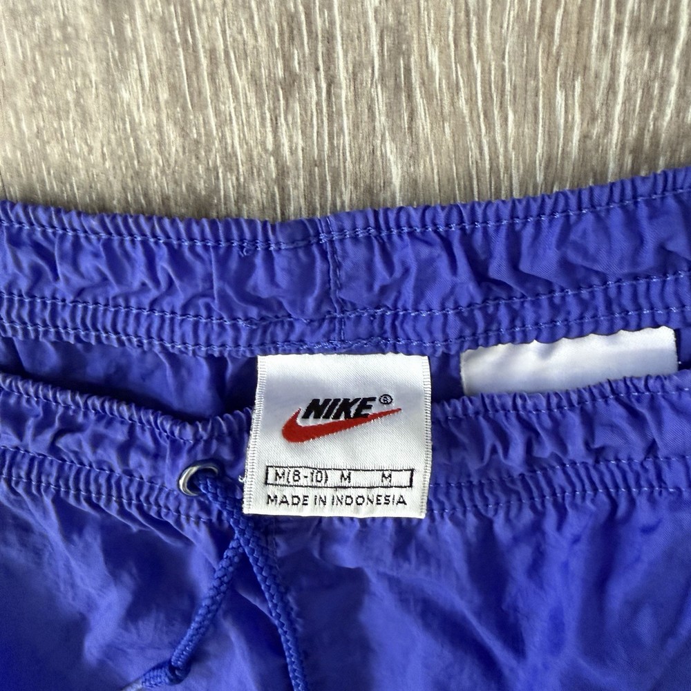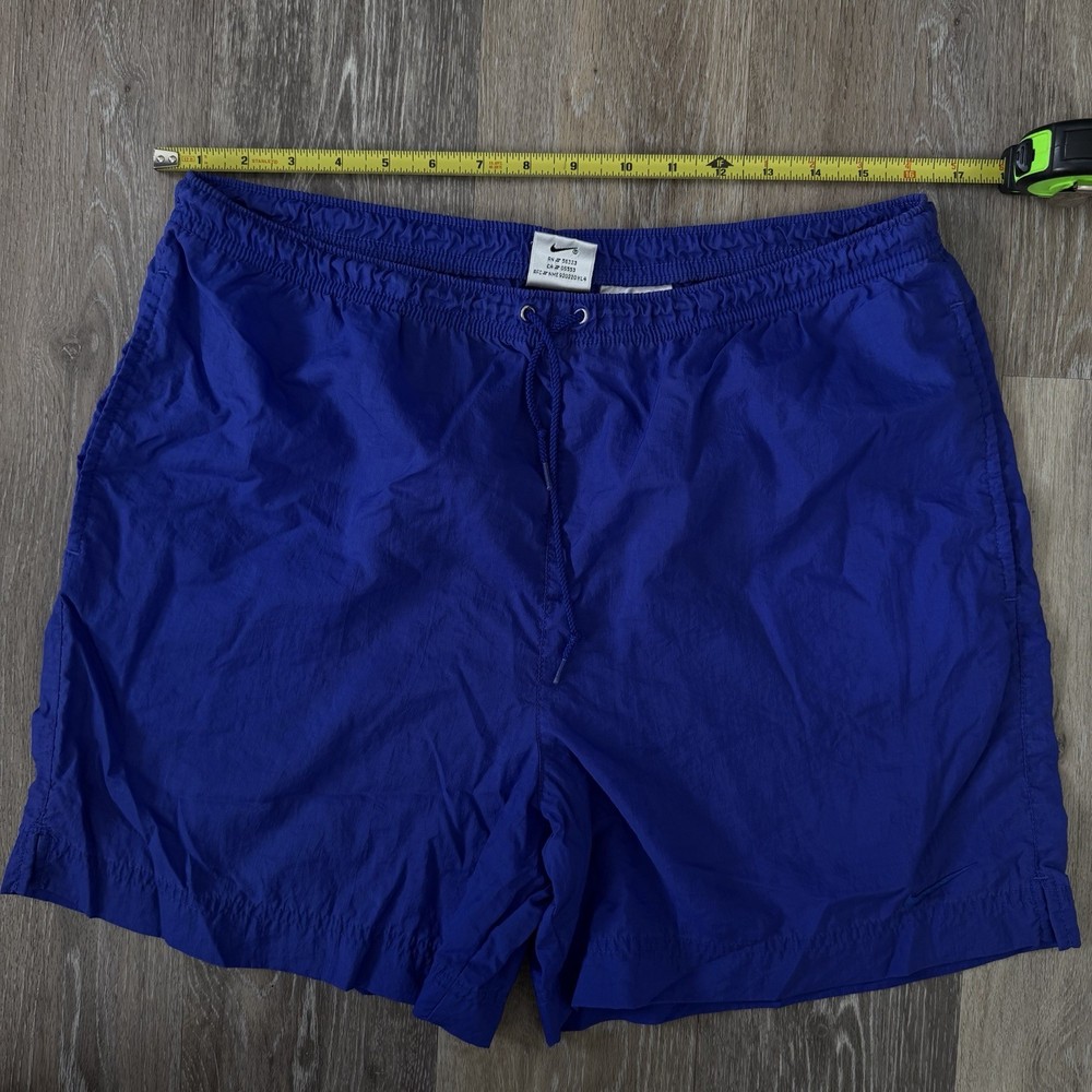 The product is a pair of vintage 90s Nike lined nylon running shorts in a size medium with a 4" inseam. These athletic shorts are perfect for men looking for activewear with a retro 90s vibe. The blue color and nylon material make them both stylish and durable for any physical activities. The lined feature adds extra comfort for the wearer, making them a great choice for running or other athletic pursuits. Will ship quickly if you have any questions or concerns let me know thank you !