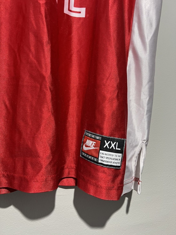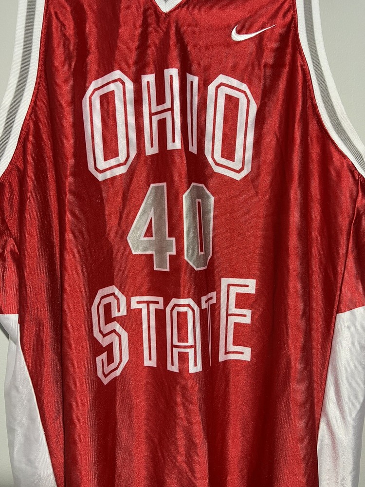 Show your Buckeyes pride with this vintage 90's Ohio State University basketball jersey from Nike. Made with high-quality materials, this jersey is perfect for any fan of the team looking to represent their colors on and off the court. With a size of 2XL and the iconic Buckeyes logo prominently displayed on the front, this jersey is a must-have for any Ohio State fan. Whether you're shooting hoops or cheering from the stands, this jersey will make you feel like a true Buckeyes champion.