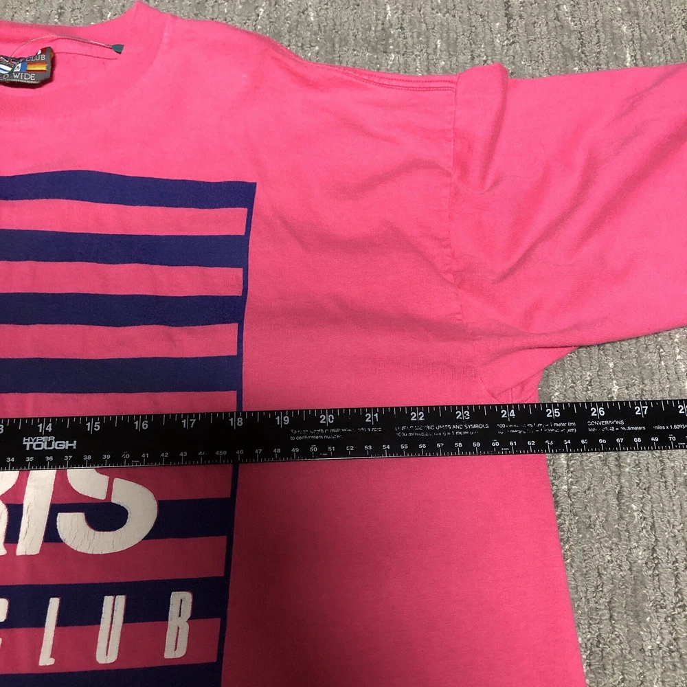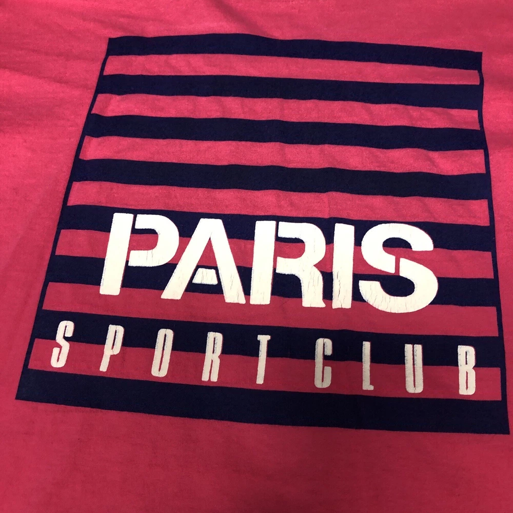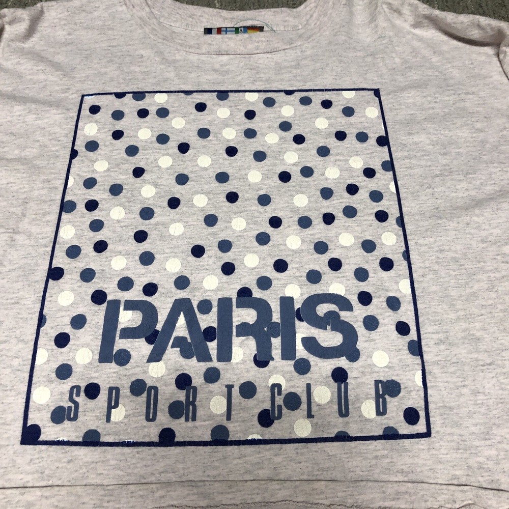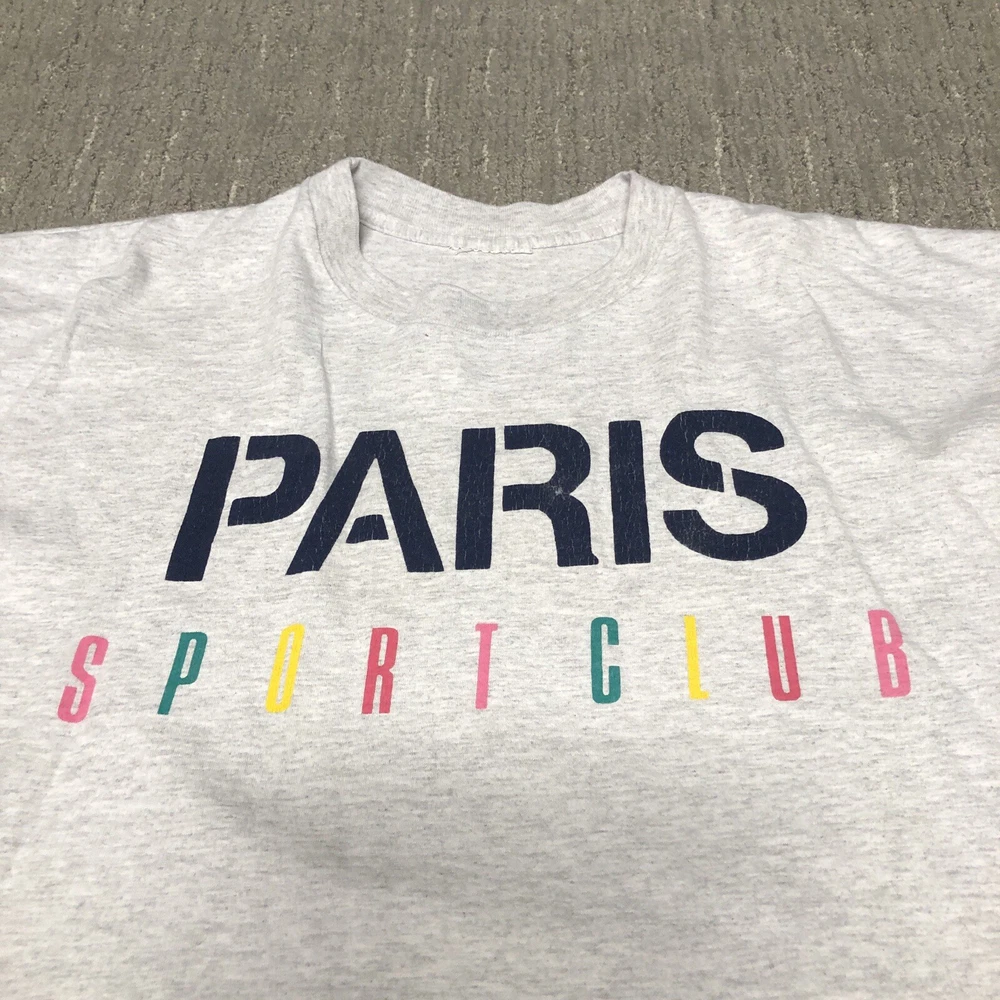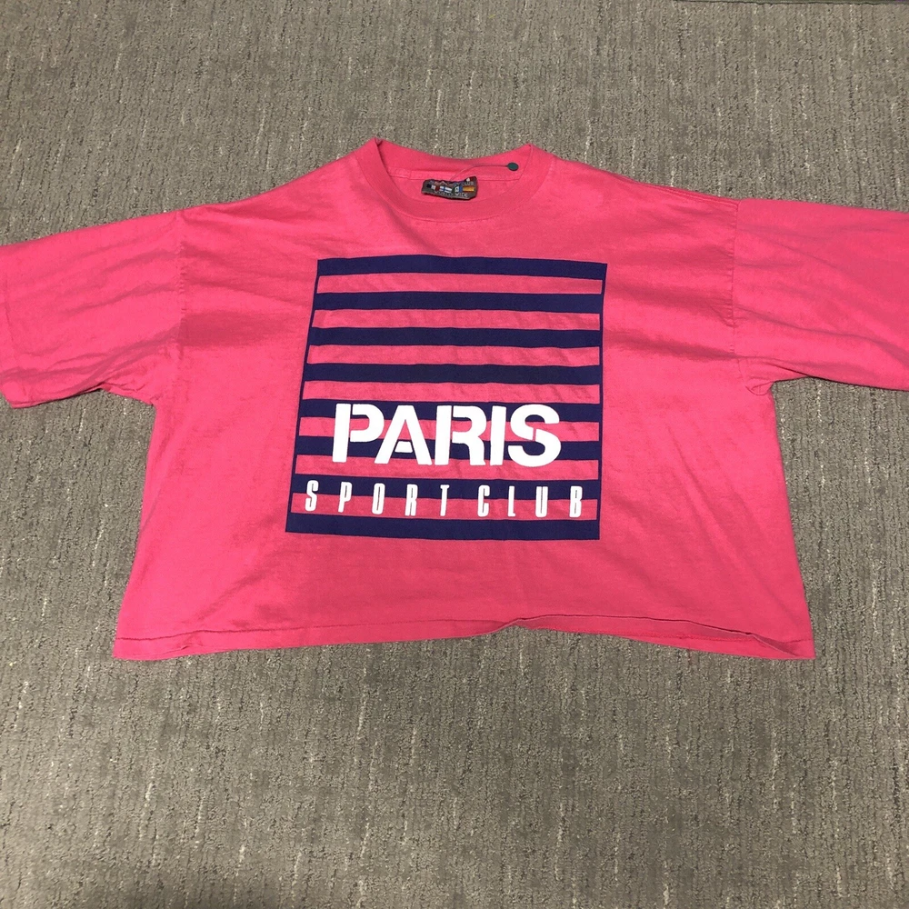 Vintage: Yes Country/Region of Manufacture: United States Sleeve Length: Short Sleeve Size: XL Theme: 90s, Retro, Preppy Type: T-Shirt Size Type: Regular Department: Women Neckline: Crew Neck Color: Multicolor Brand: Paris Sport Club Closure: Pullover Pattern: Solid Style: Cropped Material: Cotton Fit: Regular