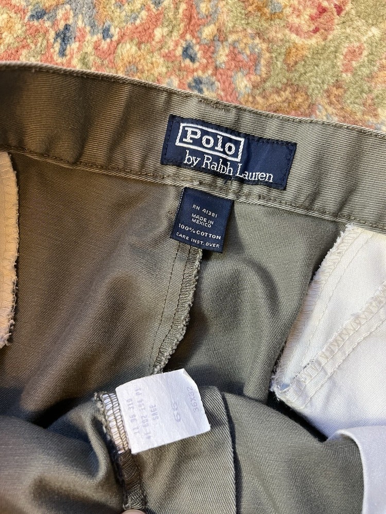 gtin13:Does not applyMaterial:CottonSize:36Pocket Type:Slash PocketCountry/Region of Manufacture:MexicoTheme:Logo, PreppyFit:RegularGarment Care:Machine WashableOccasion:Business, Casual, TravelAccents:Button, Logo, ZipperUPC:Does not applyWaist Size:36 inDepartment:MenStyle:ChinoSize Type:RegularSeason:Fall, Spring, WinterType:PantsInseam:32 inPattern:SolidVintage:YesBrand:Polo Ralph LaurenProduct Line:Polo Ralph Lauren AndrewLeg Style:StraightFabric Type:CanvasFront Type:PleatedModel:Polo Ralph Lauren Andrew PantFeatures:Comfort, Easy Care, PocketsClosure:Button, ZipColor:Brown