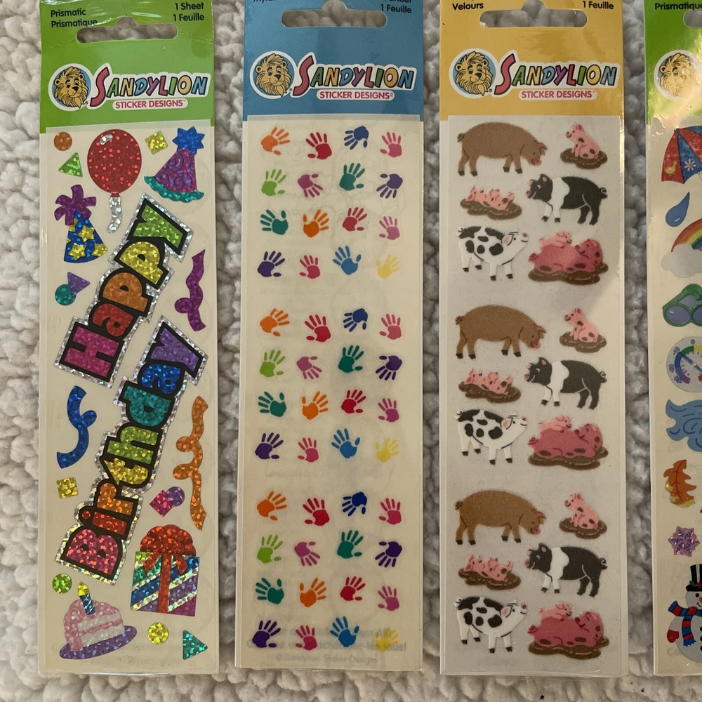 Vintage 90s Sandylion Sticker Sheet New Lot of 7 Prizmatic, Fuzzy, RARE!