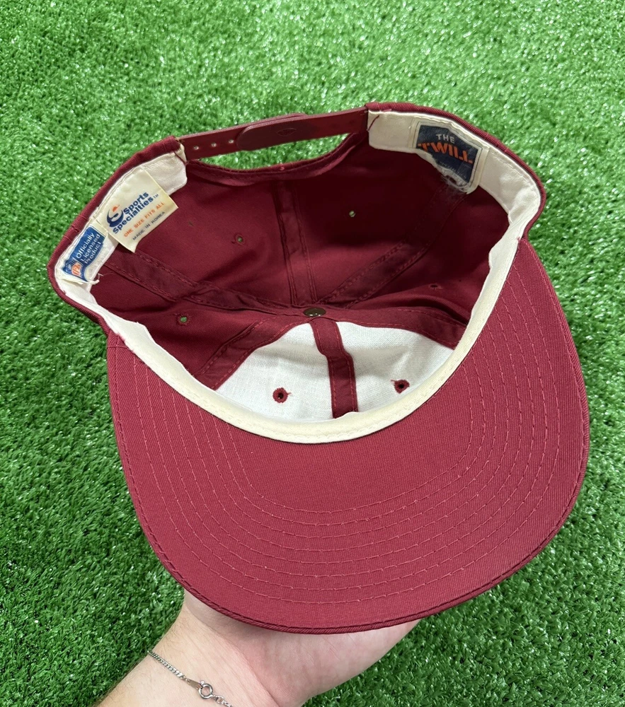 Show off your love for the St. Louis Cardinals with this vintage 90s Sports Specialties snapback cap. The burgundy wool fabric and adjustable size make it the perfect addition to any fan's collection. This officially licensed cap features the team's script logo and is perfect for wearing to games or just around town. Whether you're a die-hard fan or just looking for a stylish accessory, this cap is sure to impress.